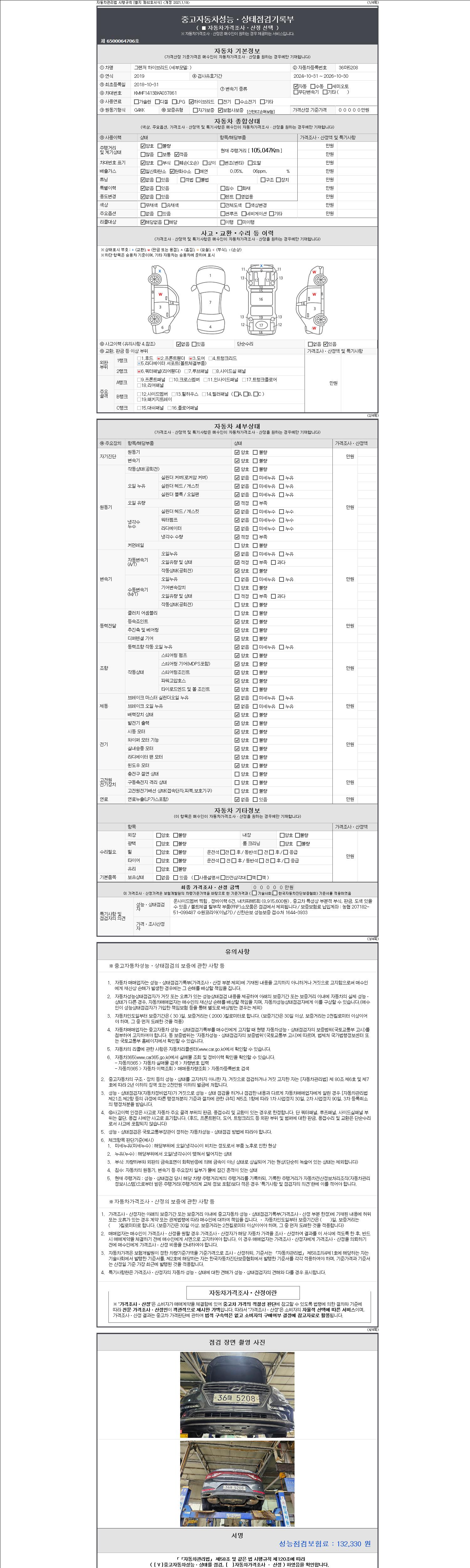 | 주행거리 | 105,047 km | 차량번호 | 36마5208 |