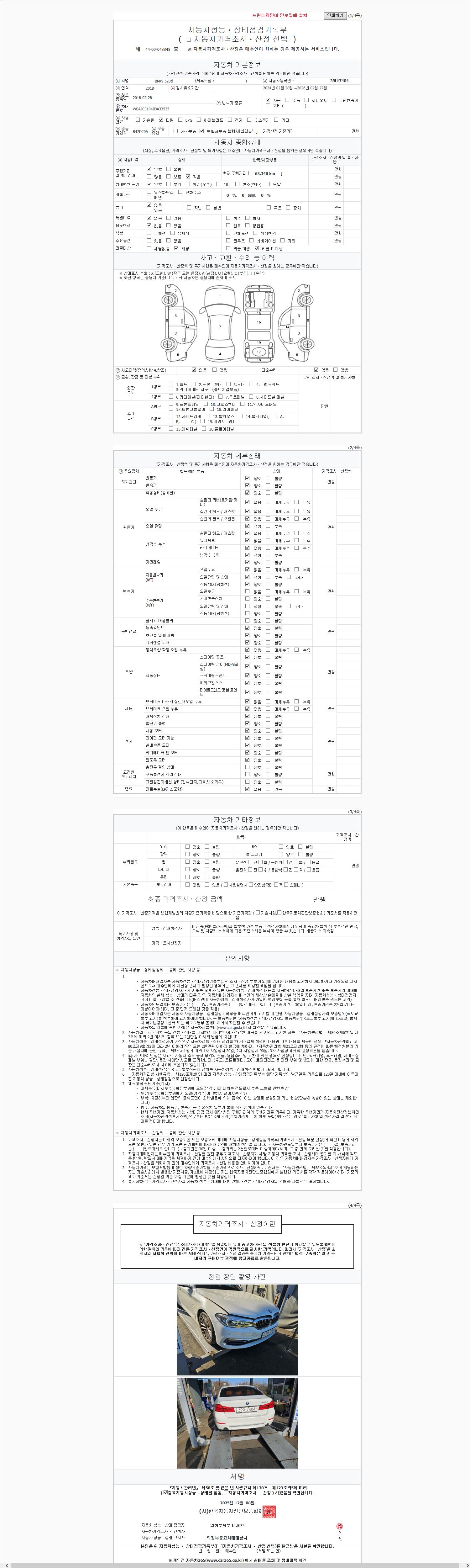 사고유무 성능기록부 참조 제시번호 제 2025222467 호