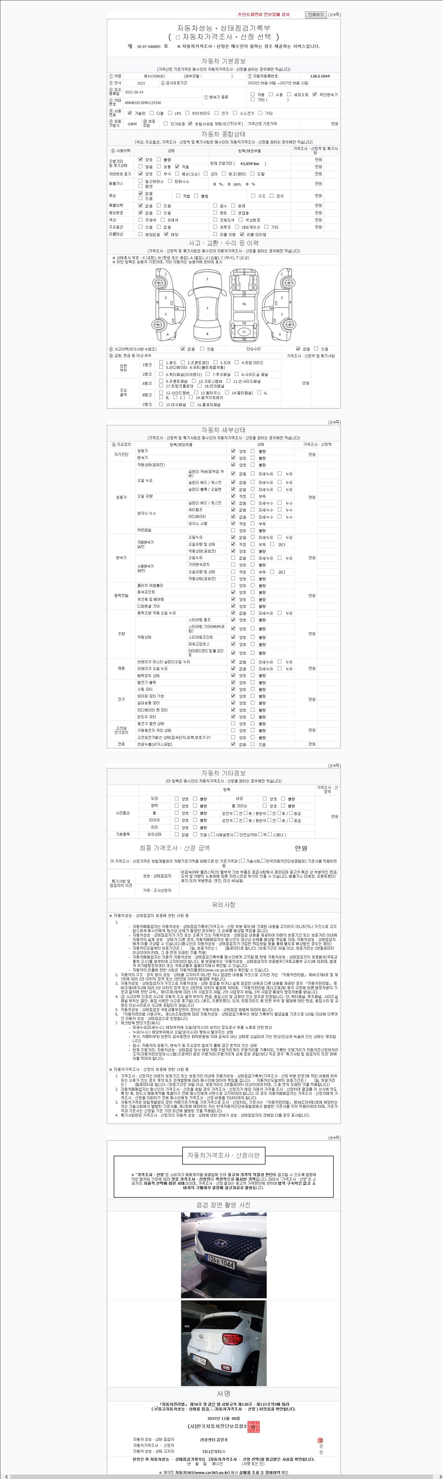 -중고자동차 매매업자를 통해 차량을 구입하실 경우 반드시 "중고자동차 성능, 상태점검 기록부"를 교뷰 받으셔야 하며, 매매업자는 반드시 의무 교부 하여야 압니다.