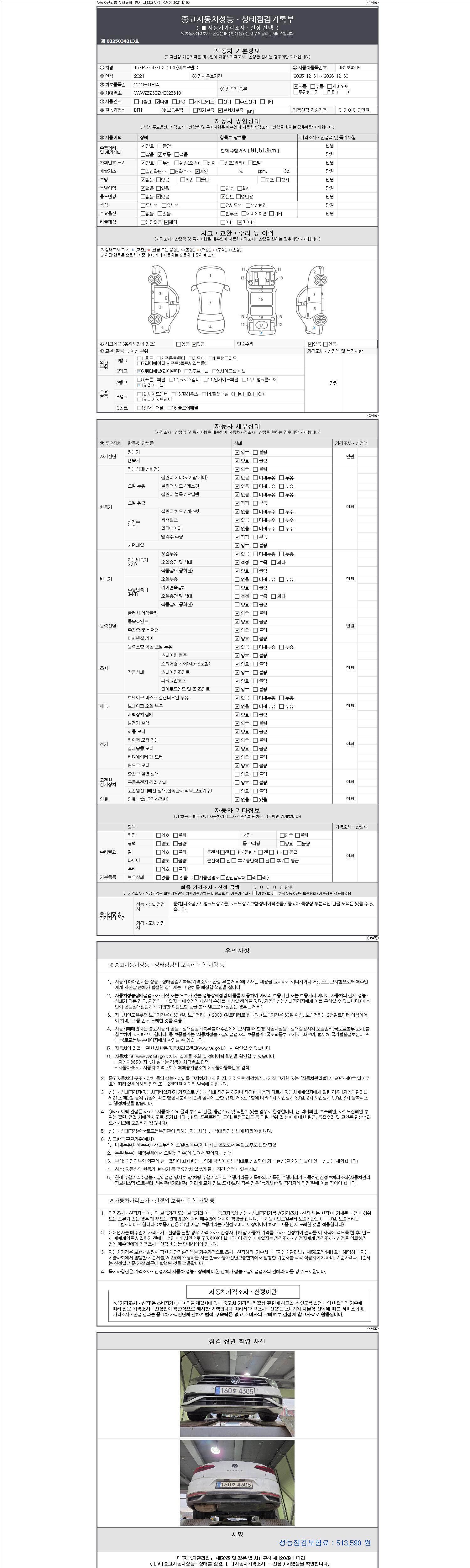 | 주행거리 | 91,513 km | 차량번호 | 160호4305 |