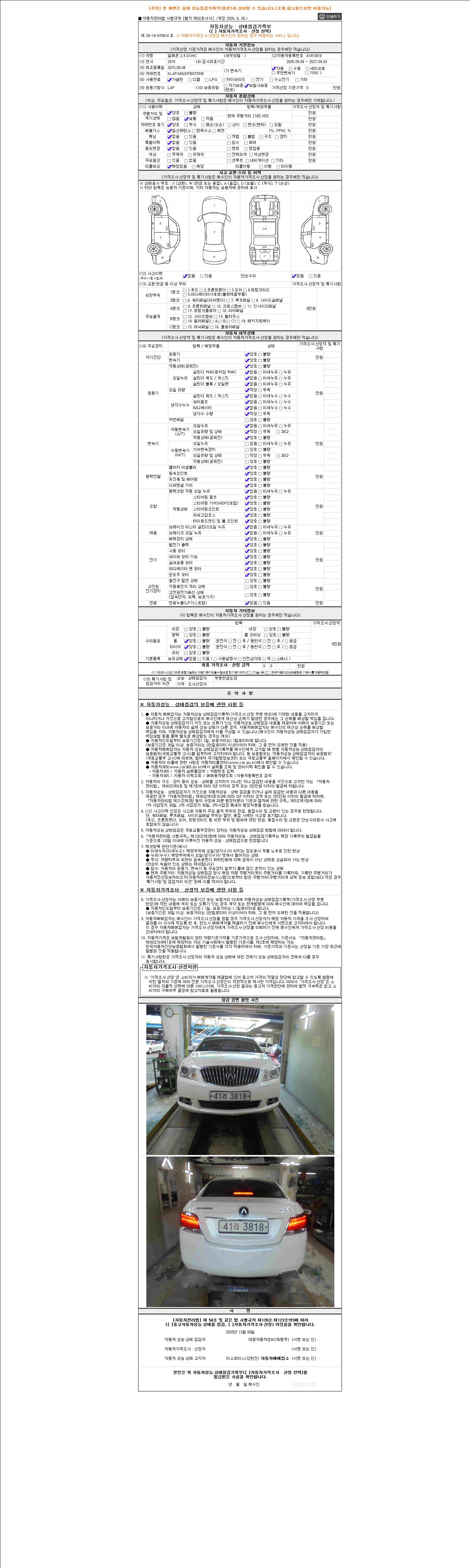 2. 차량 등록증이나 성능점검지 등을 상담자에게 요청및 확인하시고 사전에 미리 점검 하시기를 권유드립니다.