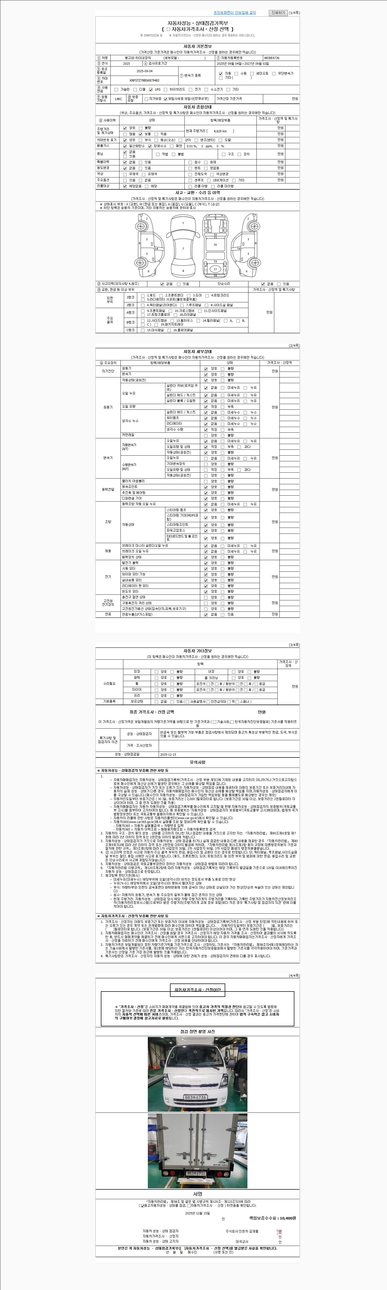 2. 차량 등록증이나 성능점검지 등을 상담자에게 요청및 확인하시고 사전에 미리 점검 하시기를 권유드립니다.