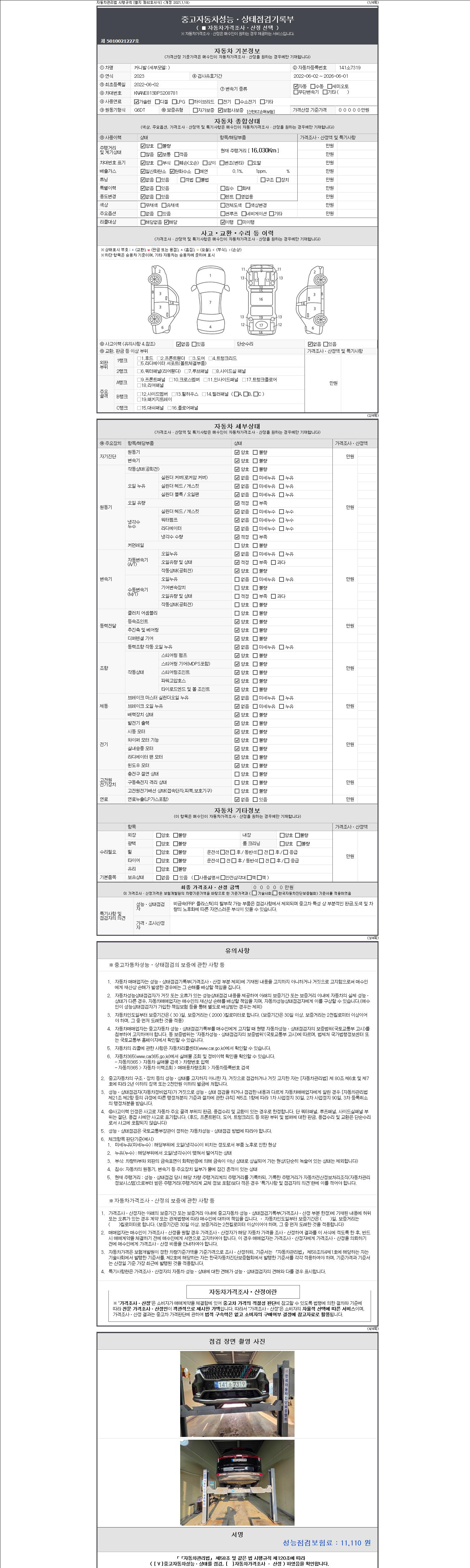 2. 차량 등록증이나 성능점검지 등을 상담자에게 요청및 확인하시고 사전에 미리 점검 하시기를 권유드립니다.