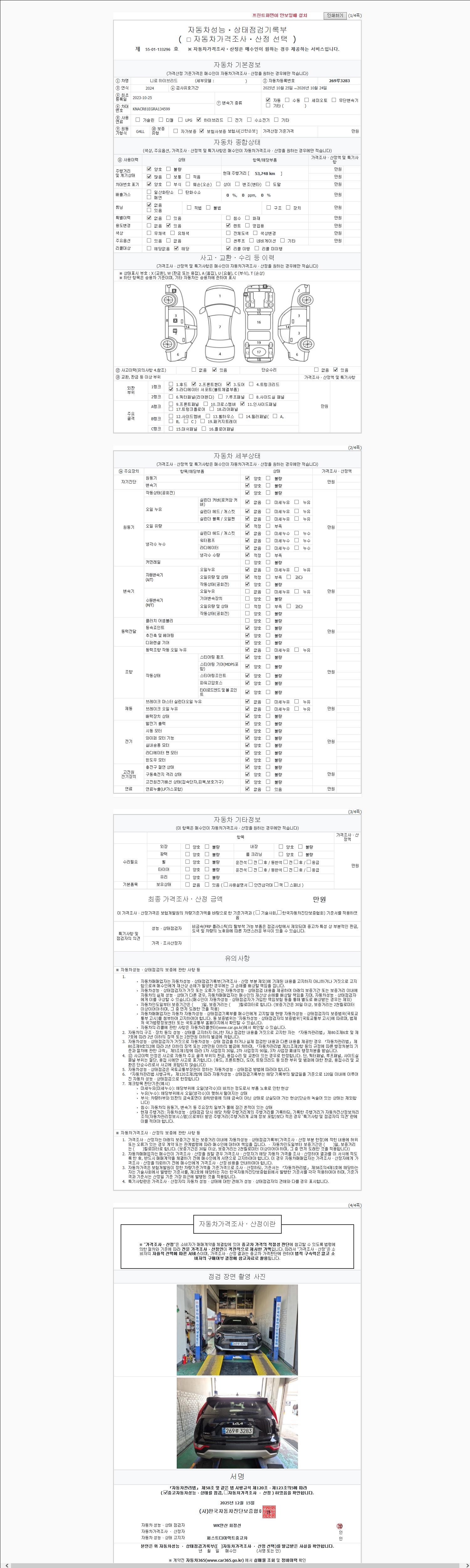 | 주행거리 | 53,748 km | 차량번호 | 269루3283 |