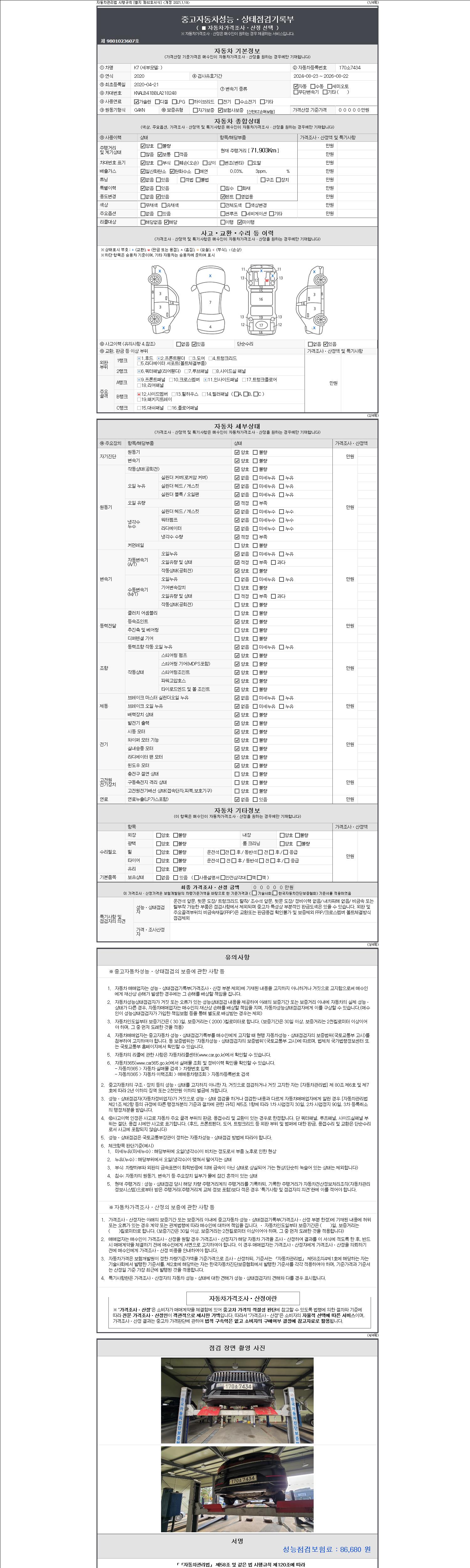 | 주행거리 | 71,903 km | 차량번호 | 170소7434 |
