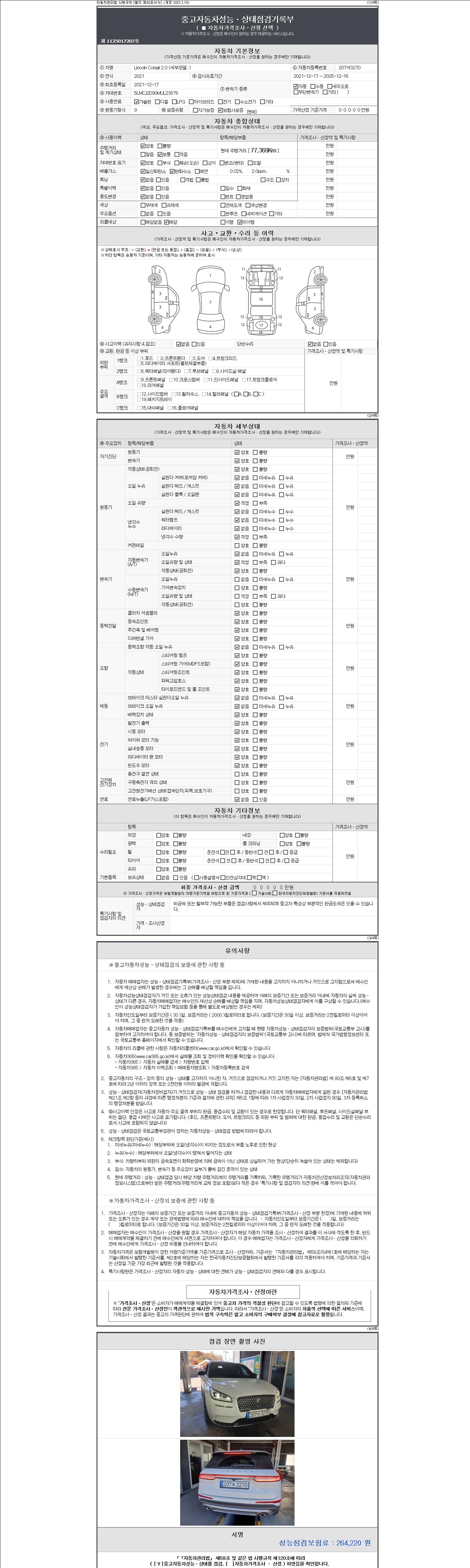 사고유무 성능기록부 참조 제시번호 제 2147483647 호
