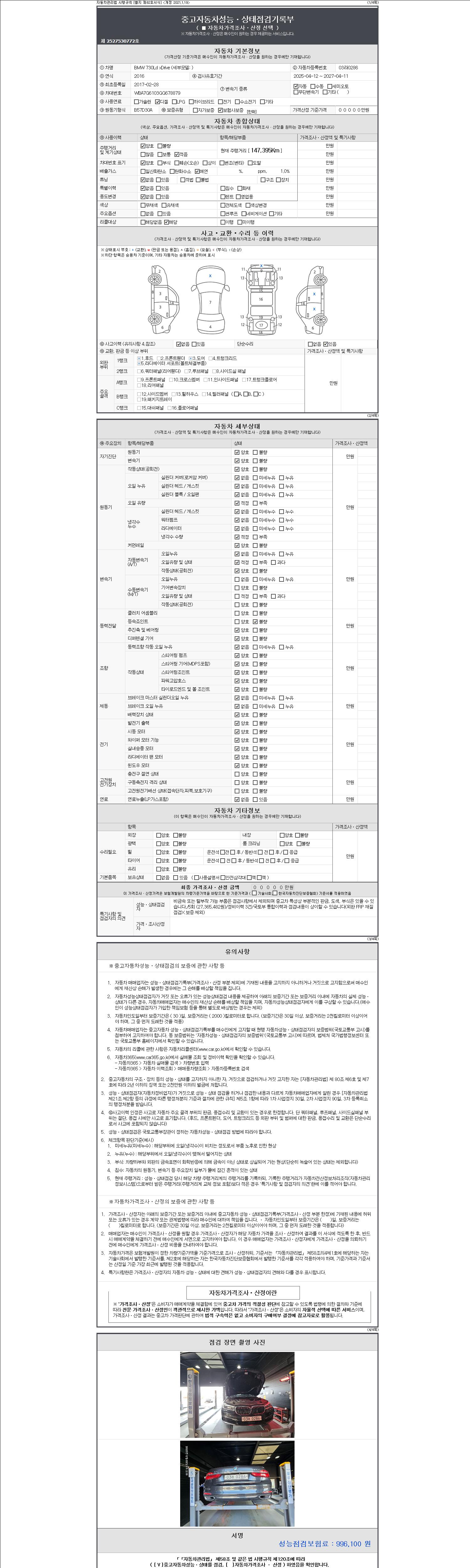 2. 차량 등록증이나 성능점검지 등을 상담자에게 요청및 확인하시고 사전에 미리 점검 하시기를 권유드립니다.