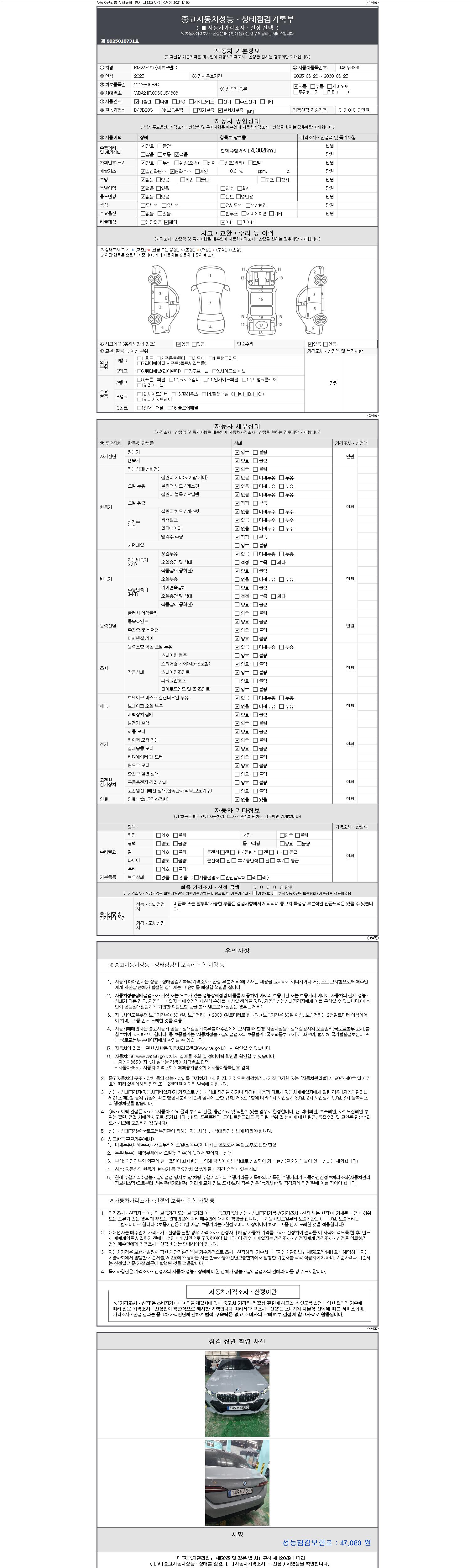 -중고자동차 매매업자를 통해 차량을 구입하실 경우 반드시 "중고자동차 성능, 상태점검 기록부"를 교뷰 받으셔야 하며, 매매업자는 반드시 의무 교부 하여야 압니다.