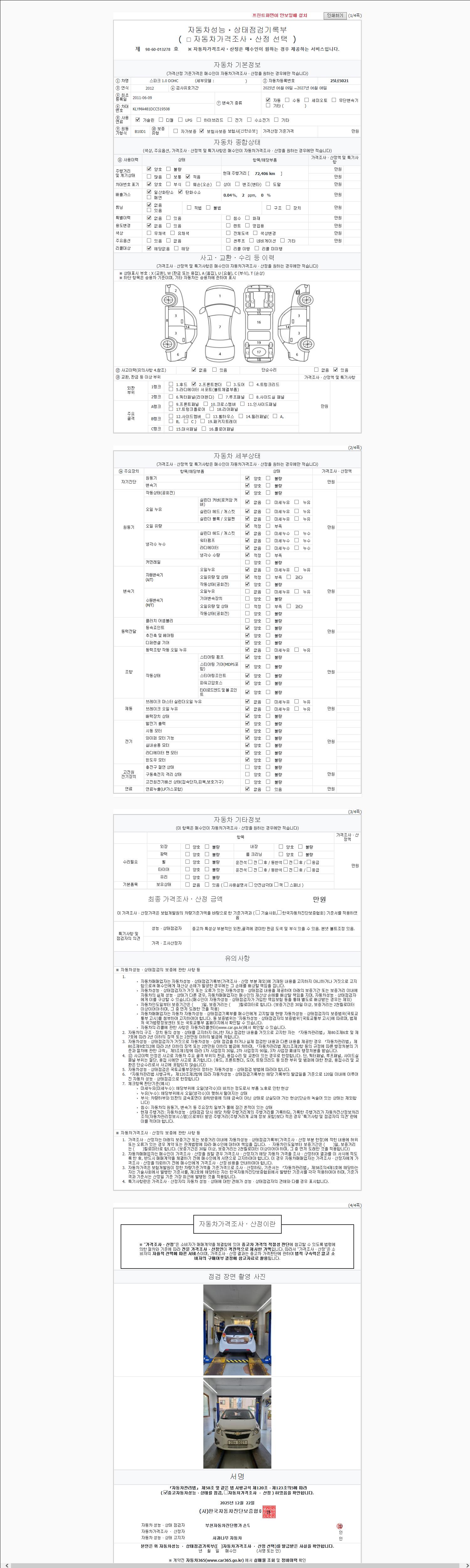 사고유무 성능기록부 참조 제시번호 제 2025235244 호