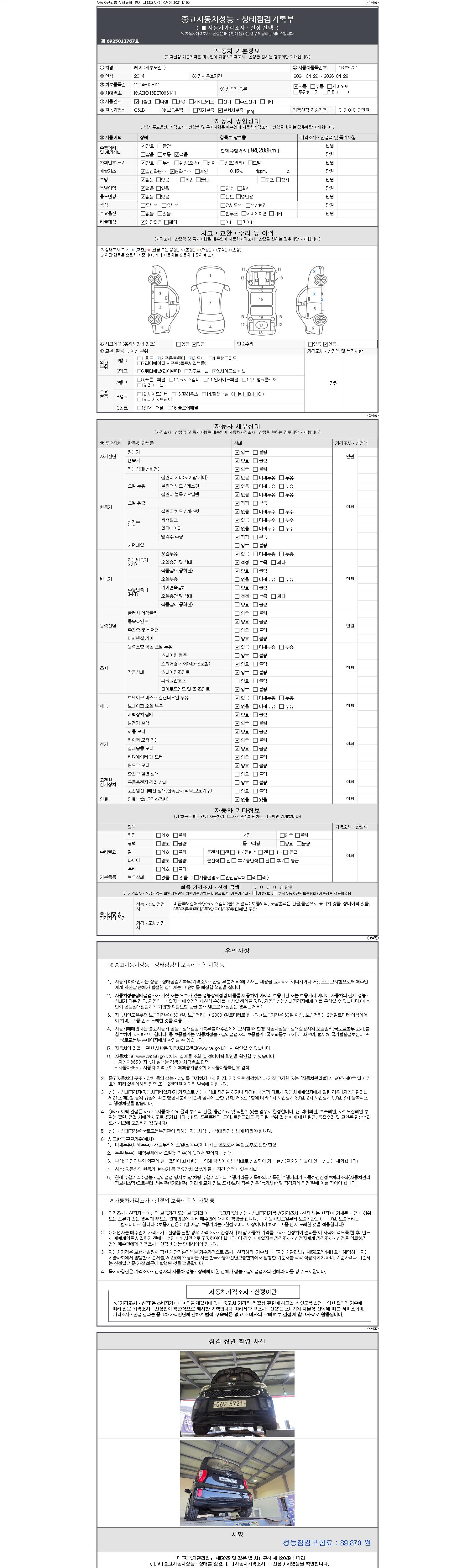 -중고자동차 매매업자를 통해 차량을 구입하실 경우 반드시 "중고자동차 성능, 상태점검 기록부"를 교뷰 받으셔야 하며, 매매업자는 반드시 의무 교부 하여야 압니다.