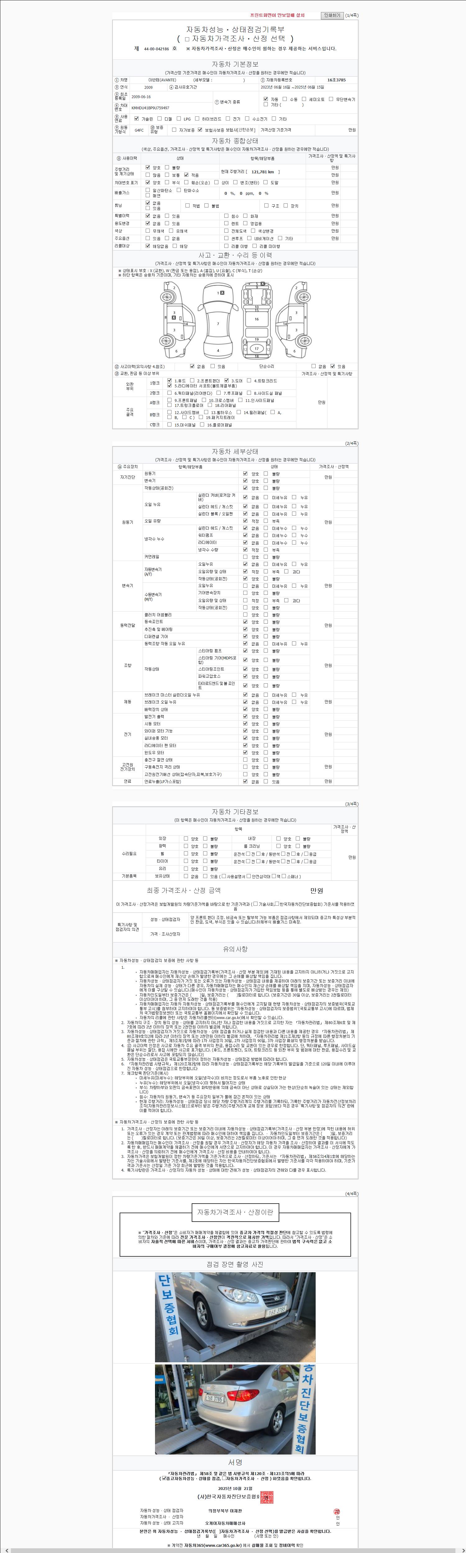 사고유무 성능기록부 참조 제시번호 제 2024075011 호