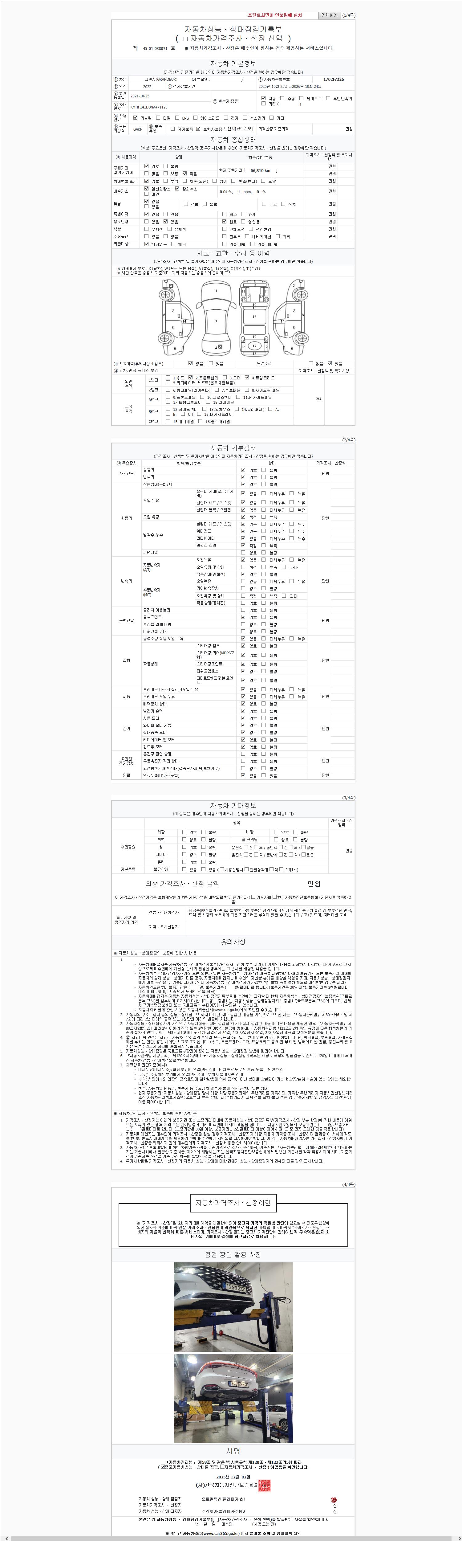 -중고자동차 매매업자를 통해 차량을 구입하실 경우 반드시 "중고자동차 성능, 상태점검 기록부"를 교뷰 받으셔야 하며, 매매업자는 반드시 의무 교부 하여야 압니다.