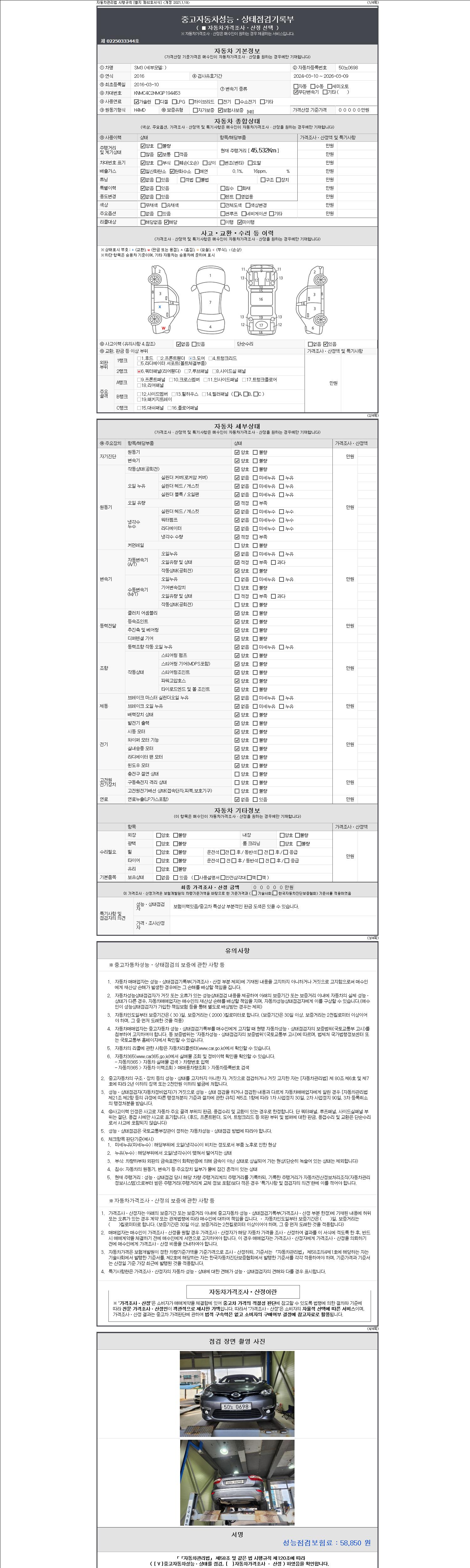 2. 차량 등록증이나 성능점검지 등을 상담자에게 요청및 확인하시고 사전에 미리 점검 하시기를 권유드립니다.