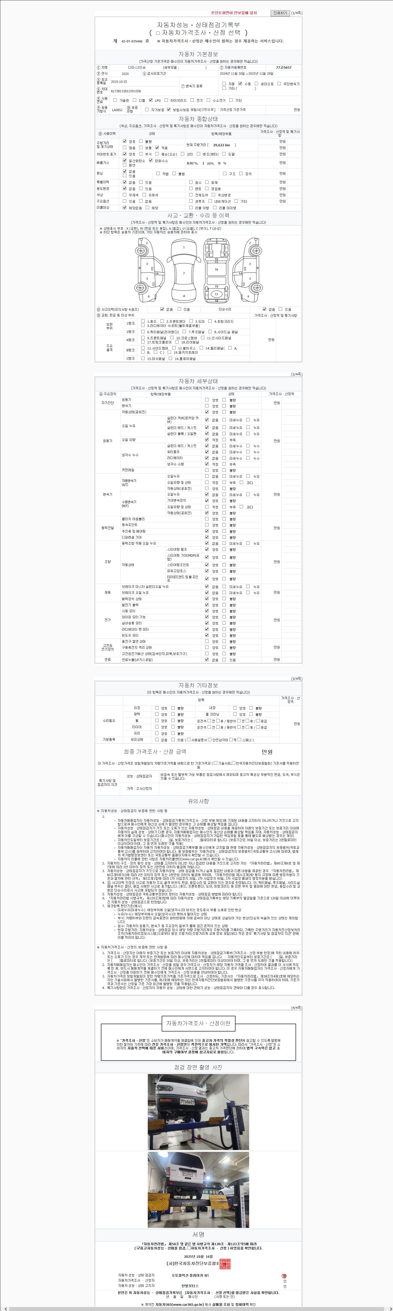 2. 차량 등록증이나 성능점검지 등을 상담자에게 요청및 확인하시고 사전에 미리 점검 하시기를 권유드립니다.