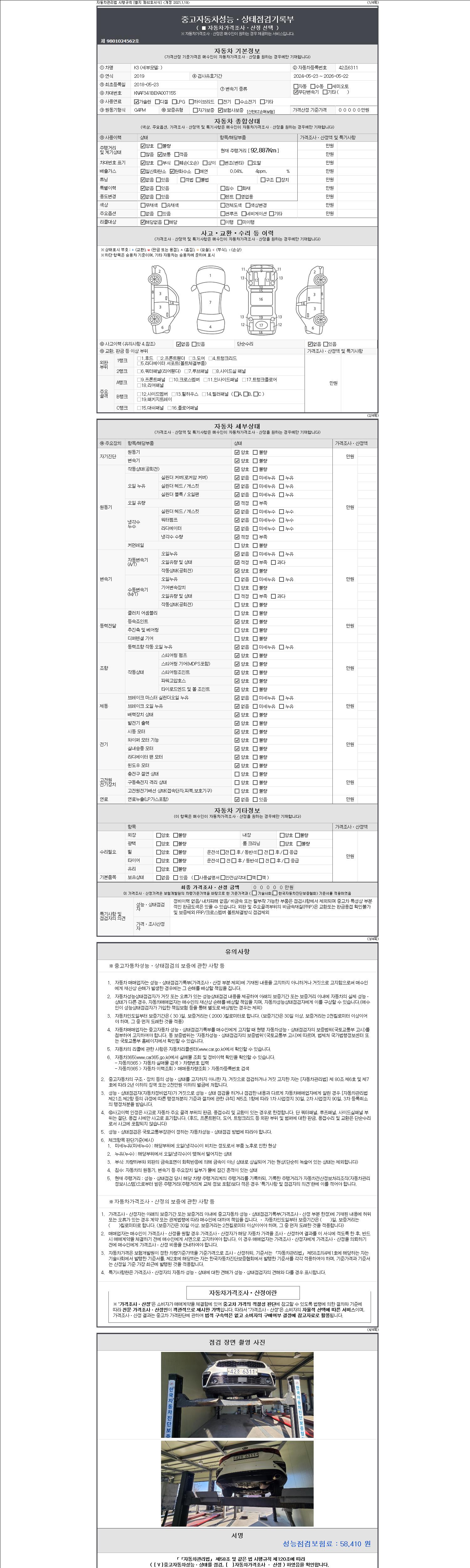 2. 차량 등록증이나 성능점검지 등을 상담자에게 요청및 확인하시고 사전에 미리 점검 하시기를 권유드립니다.
