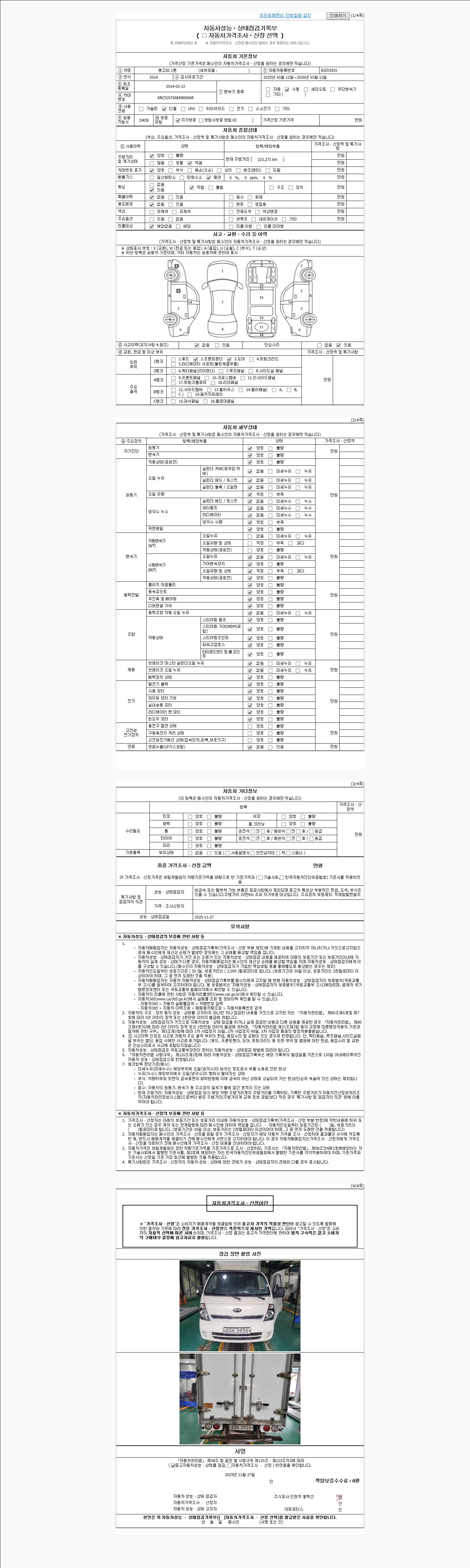 사고유무 성능기록부 참조 제시번호 제 2025033562 호
