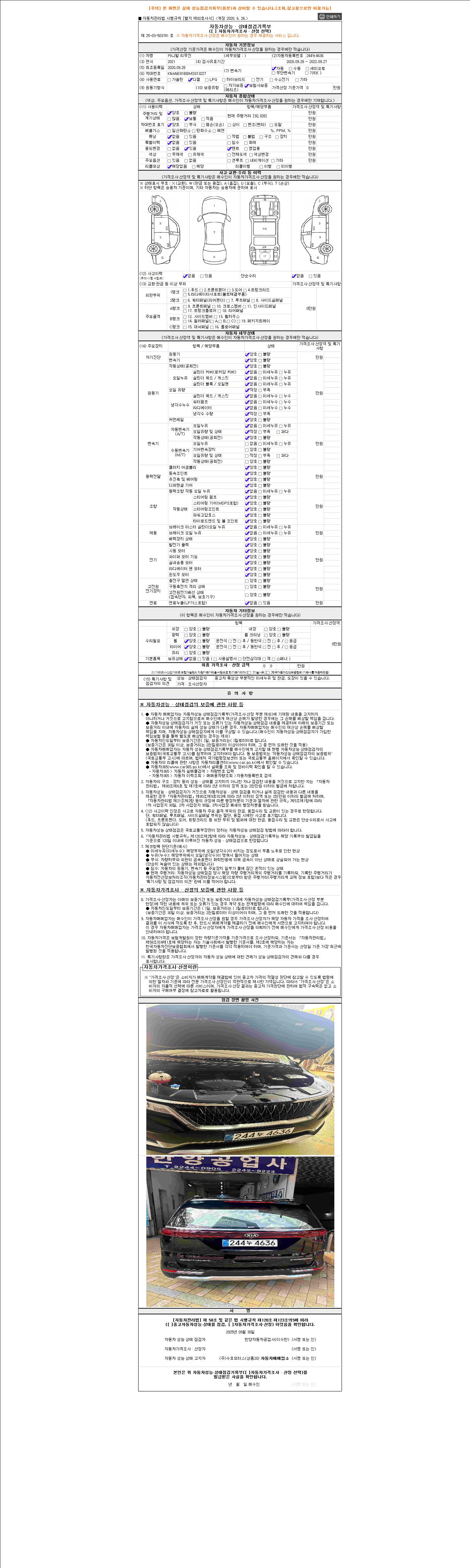 2. 차량 등록증이나 성능점검지 등을 상담자에게 요청및 확인하시고 사전에 미리 점검 하시기를 권유드립니다.