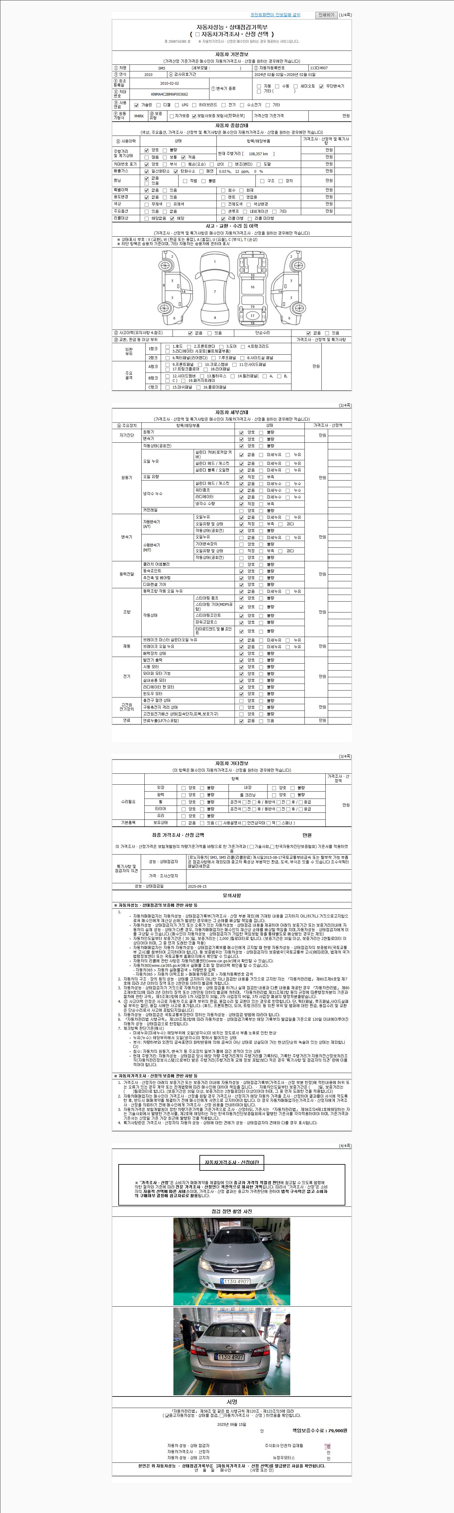 사고유무 성능기록부 참조 제시번호 제 2025050725 호