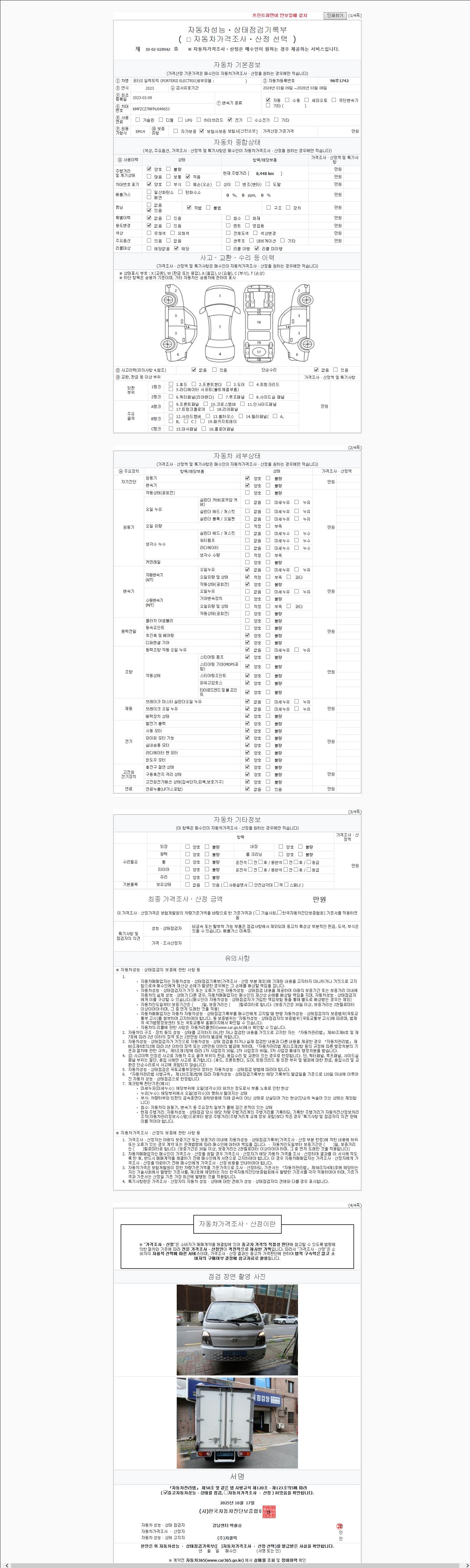 사고유무 성능기록부 참조 제시번호 제 2025125943 호