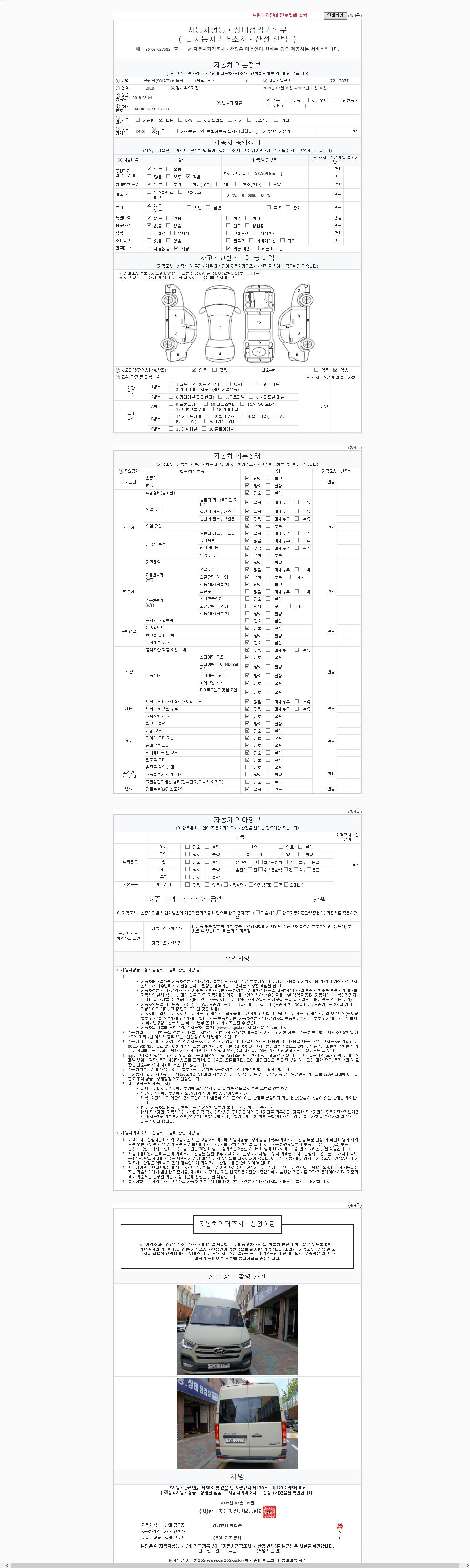사고유무 성능기록부 참조 제시번호 제 2025002319 호