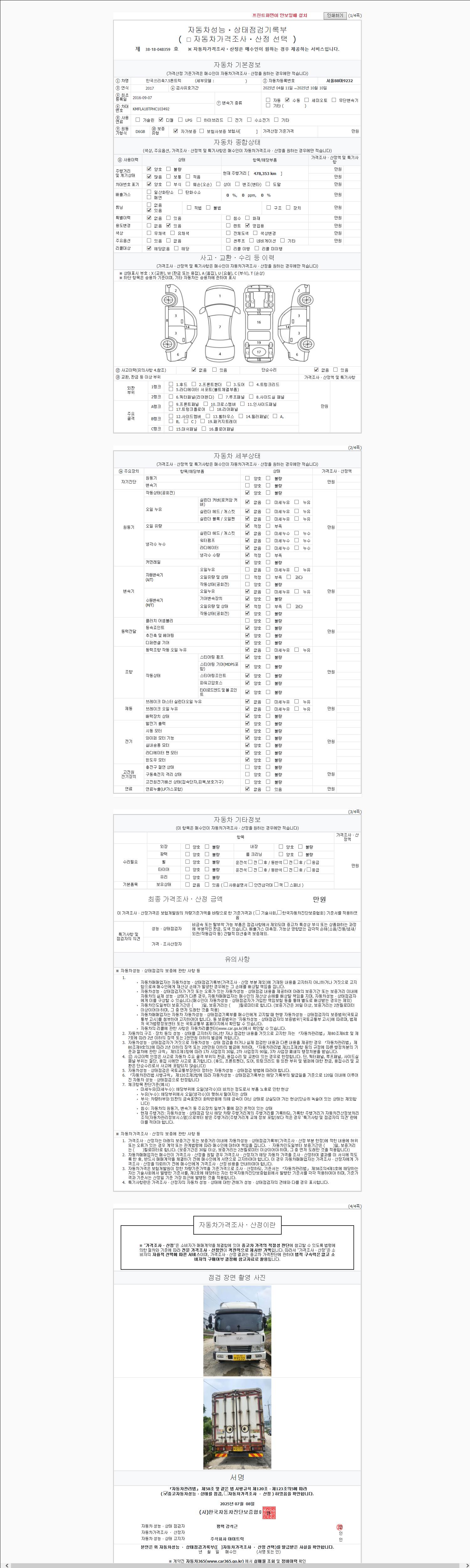 | 주행거리 | 478,353 km | 차량번호 | 81너7862 |