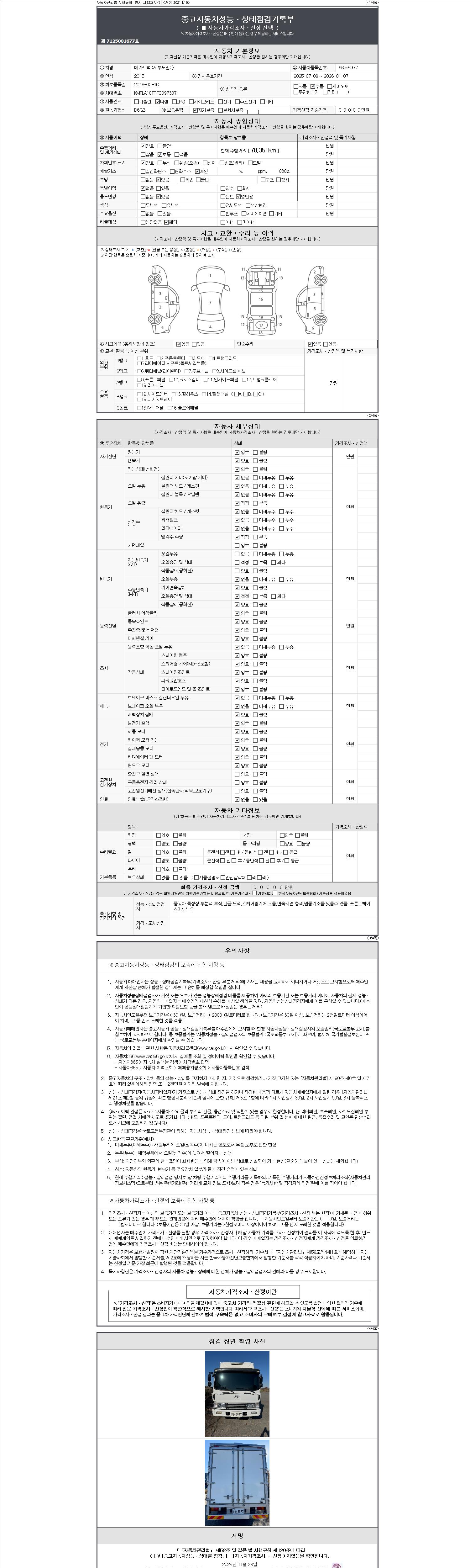 2. 차량 등록증이나 성능점검지 등을 상담자에게 요청및 확인하시고 사전에 미리 점검 하시기를 권유드립니다.