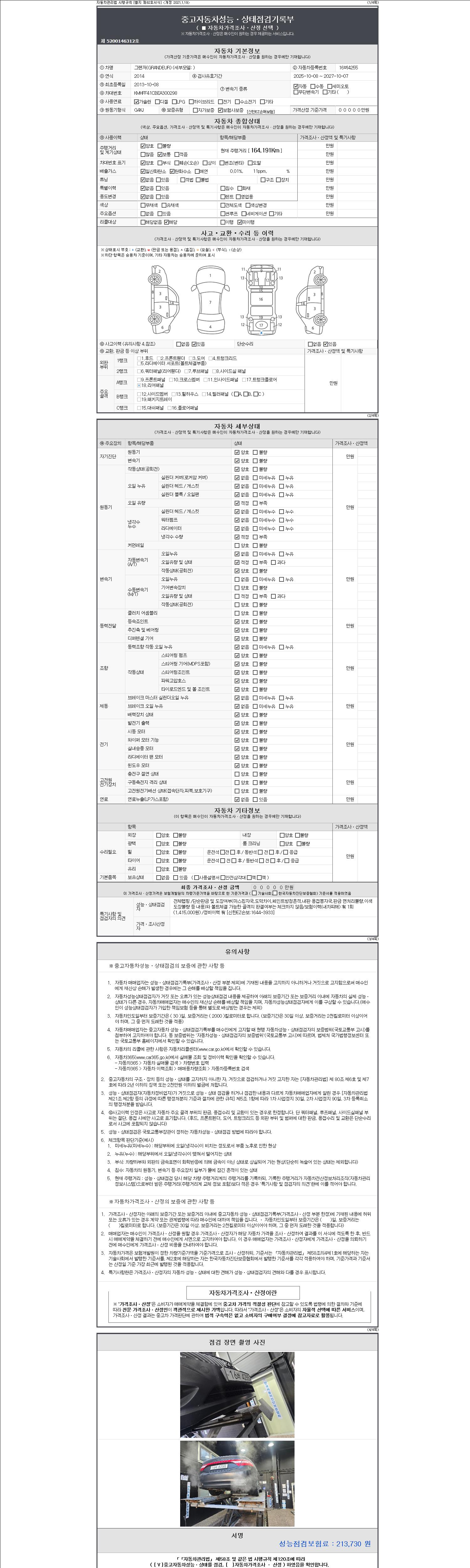 -중고자동차 매매업자를 통해 차량을 구입하실 경우 반드시 "중고자동차 성능, 상태점검 기록부"를 교뷰 받으셔야 하며, 매매업자는 반드시 의무 교부 하여야 압니다.