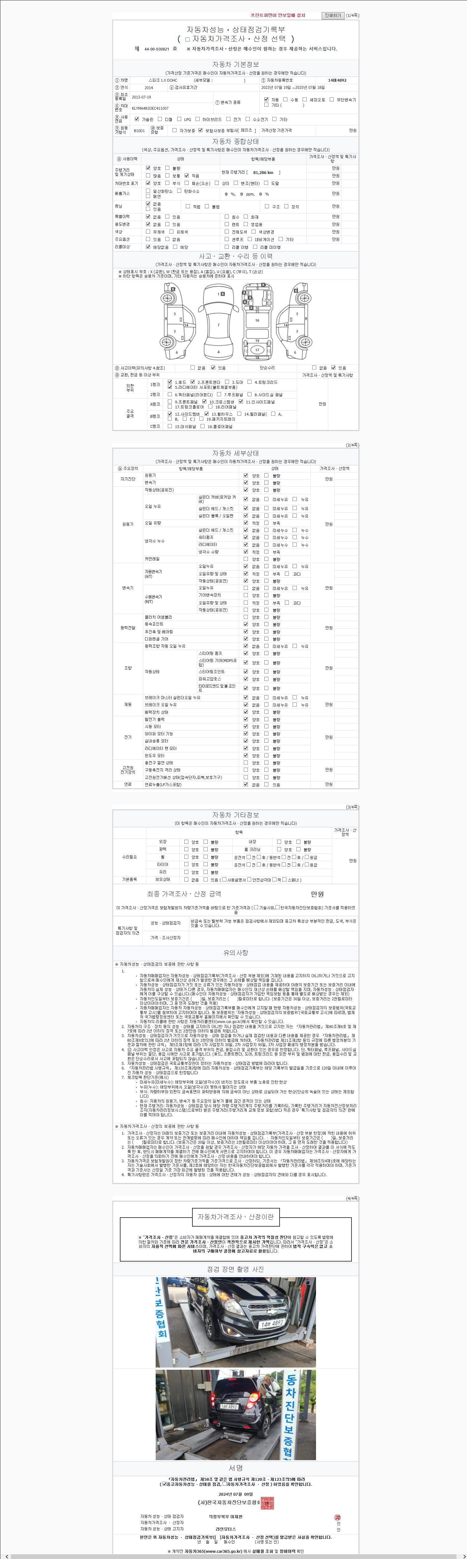 2. 차량 등록증이나 성능점검지 등을 상담자에게 요청및 확인하시고 사전에 미리 점검 하시기를 권유드립니다.