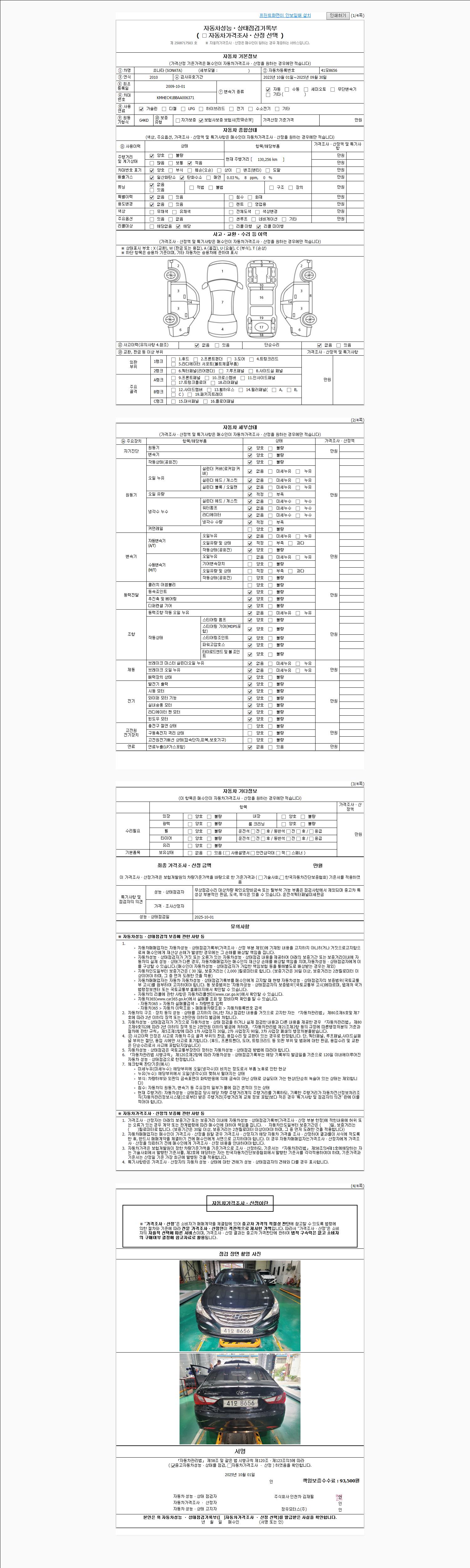 -중고자동차 매매업자를 통해 차량을 구입하실 경우 반드시 "중고자동차 성능, 상태점검 기록부"를 교뷰 받으셔야 하며, 매매업자는 반드시 의무 교부 하여야 압니다.