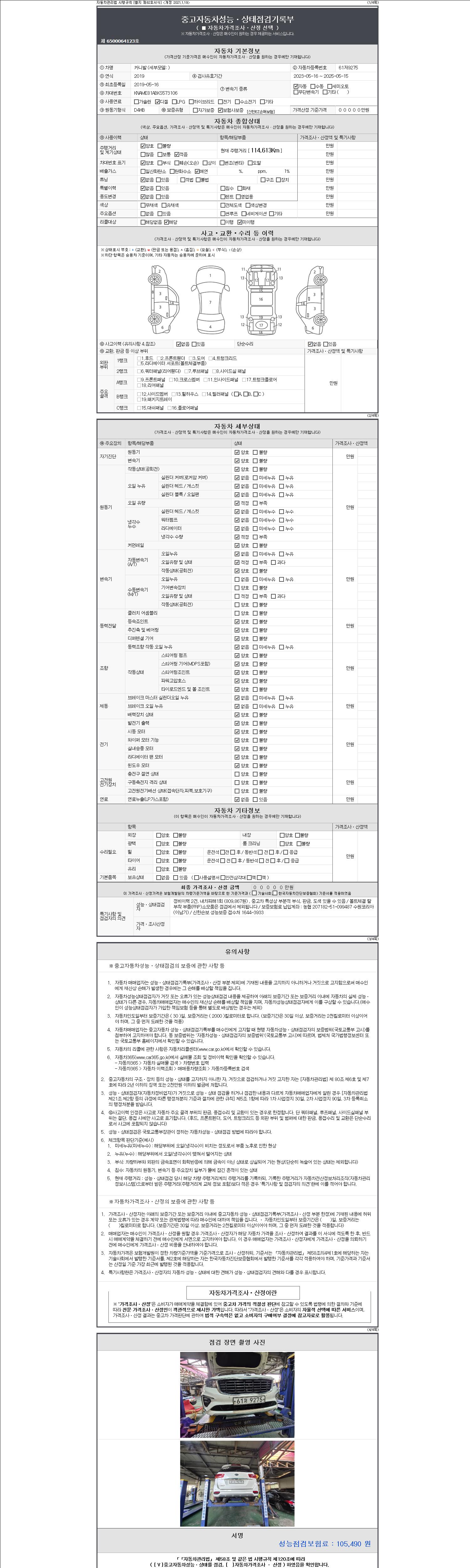 사고유무 성능기록부 참조 제시번호 제 2147483647 호