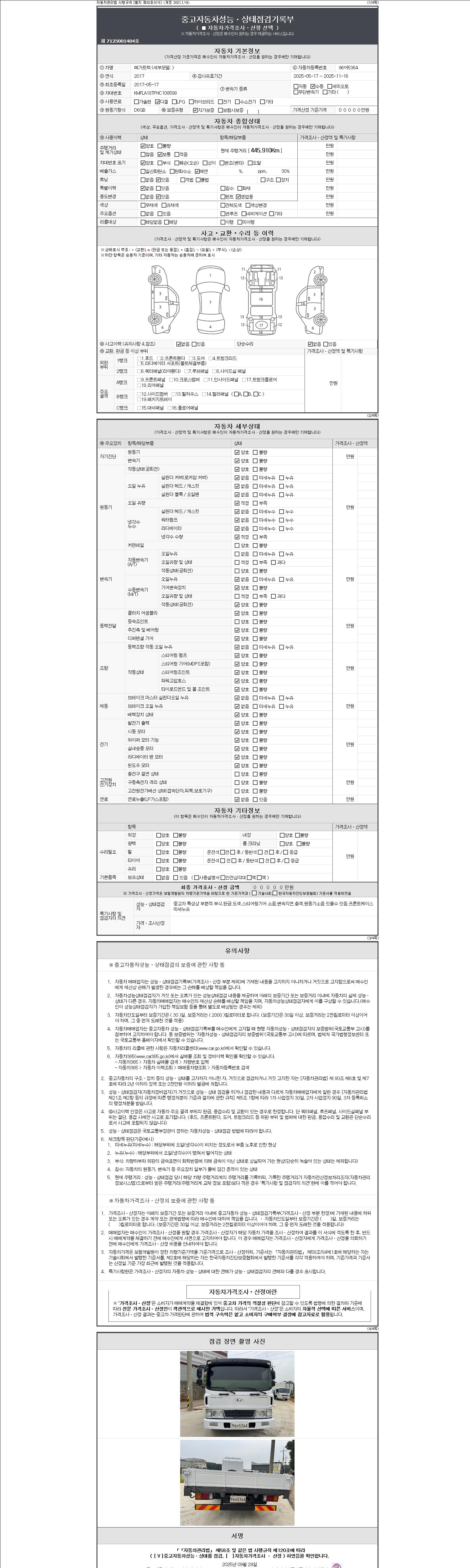 | 주행거리 | 445,910 km | 차량번호 | 96어5364 |