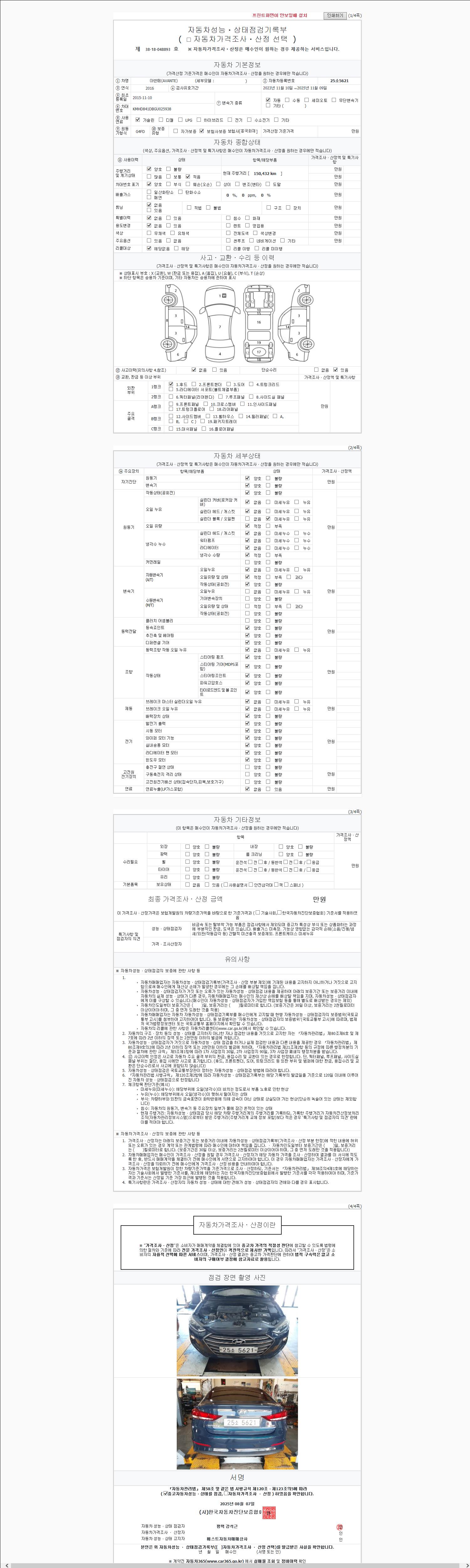 2. 차량 등록증이나 성능점검지 등을 상담자에게 요청및 확인하시고 사전에 미리 점검 하시기를 권유드립니다.