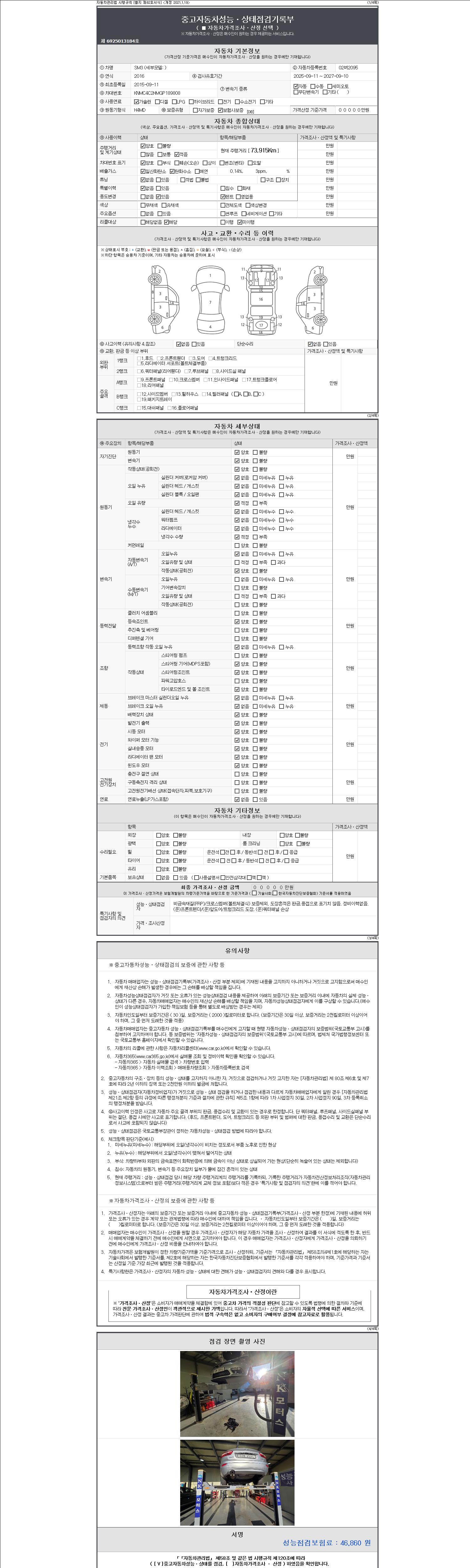 2. 차량 등록증이나 성능점검지 등을 상담자에게 요청및 확인하시고 사전에 미리 점검 하시기를 권유드립니다.