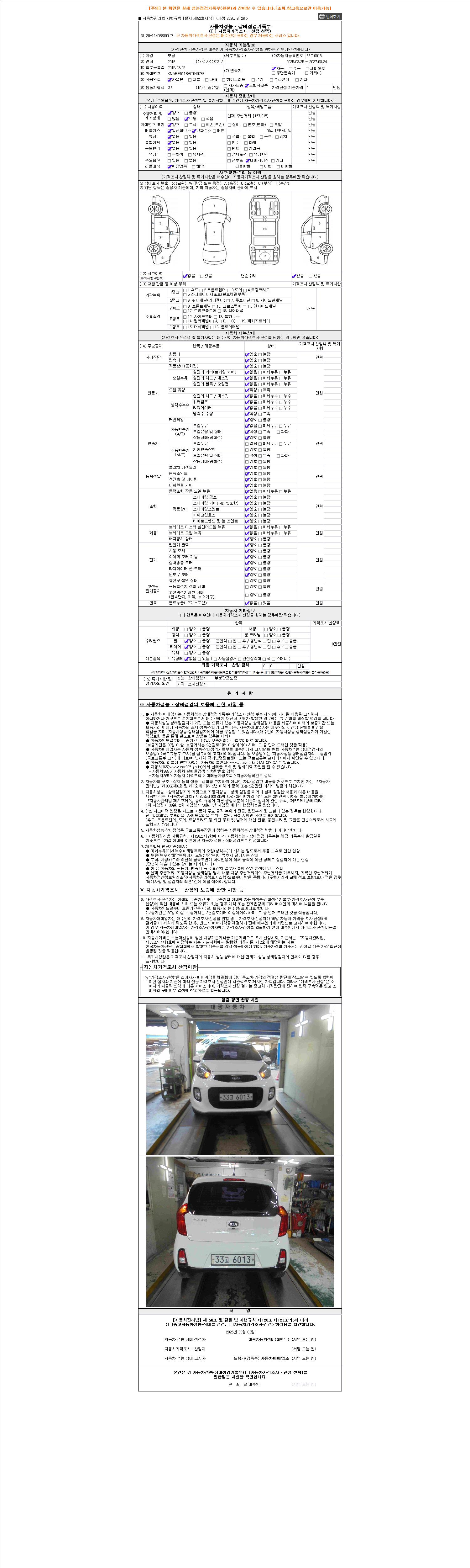 사고유무 성능기록부 참조 제시번호 제 2025116847 호