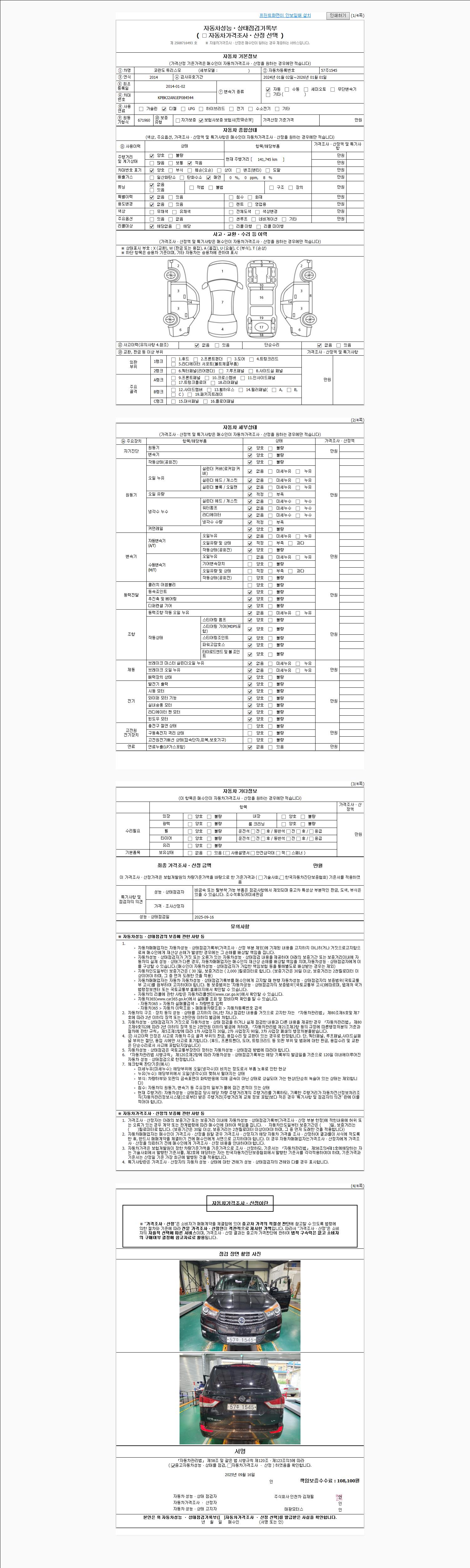 2. 차량 등록증이나 성능점검지 등을 상담자에게 요청및 확인하시고 사전에 미리 점검 하시기를 권유드립니다.