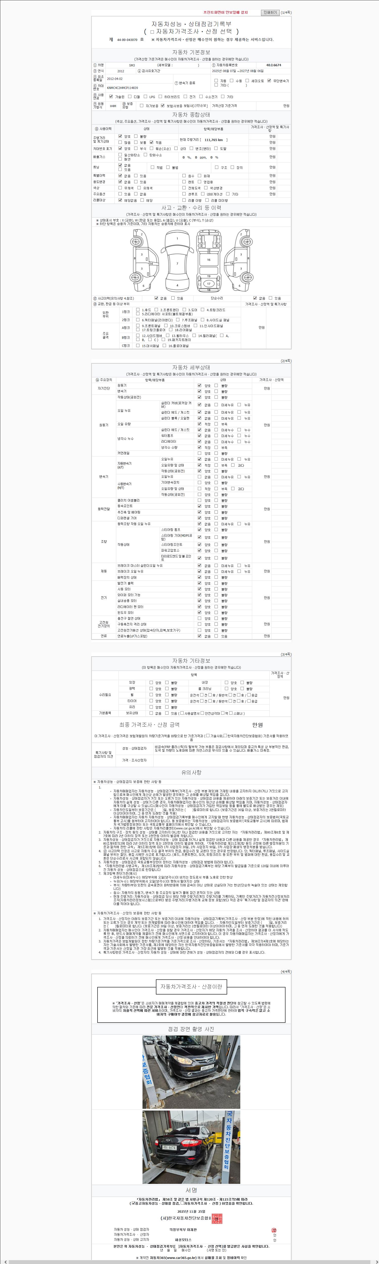 사고유무 성능기록부 참조 제시번호 제 2025218672 호