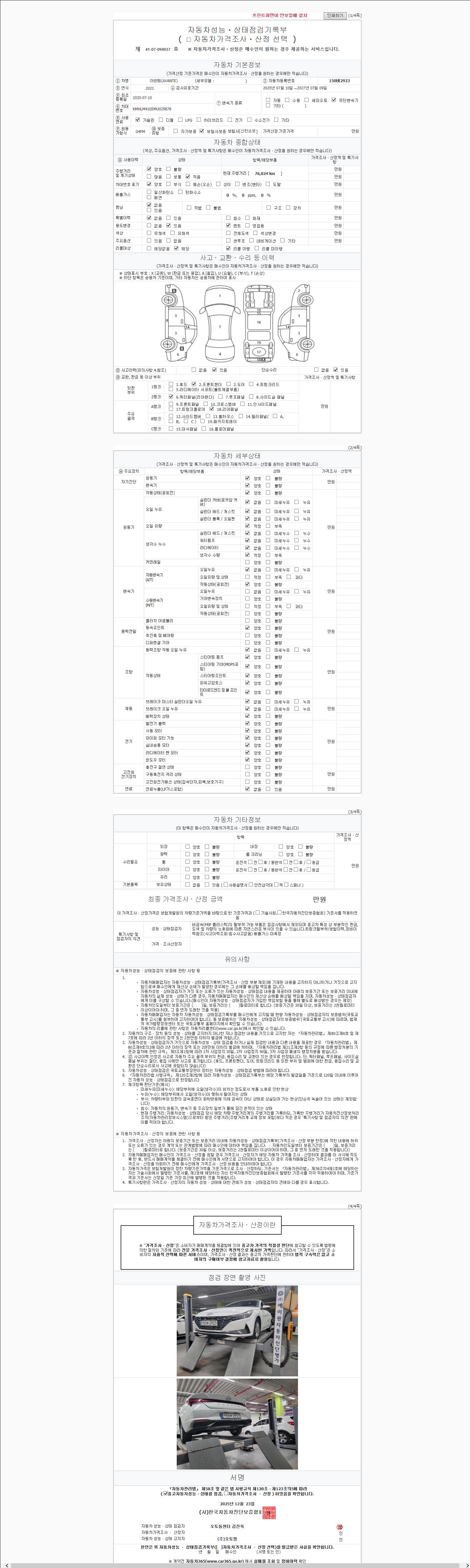 2. 차량 등록증이나 성능점검지 등을 상담자에게 요청및 확인하시고 사전에 미리 점검 하시기를 권유드립니다.