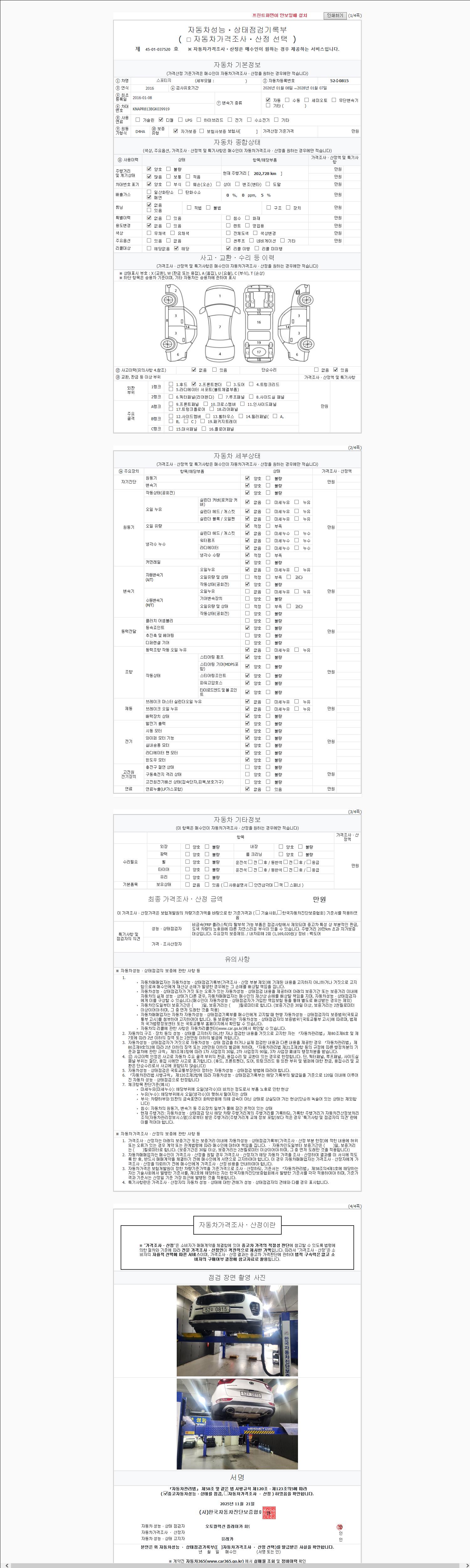 사고유무 성능기록부 참조 제시번호 제 2147483647 호