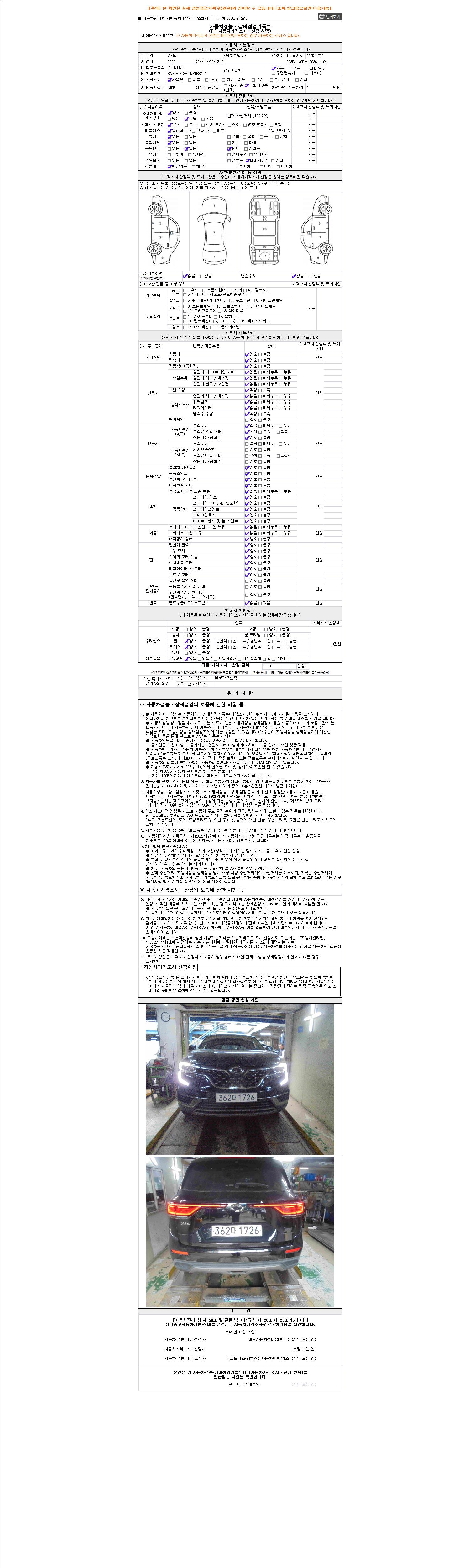 2. 차량 등록증이나 성능점검지 등을 상담자에게 요청및 확인하시고 사전에 미리 점검 하시기를 권유드립니다.