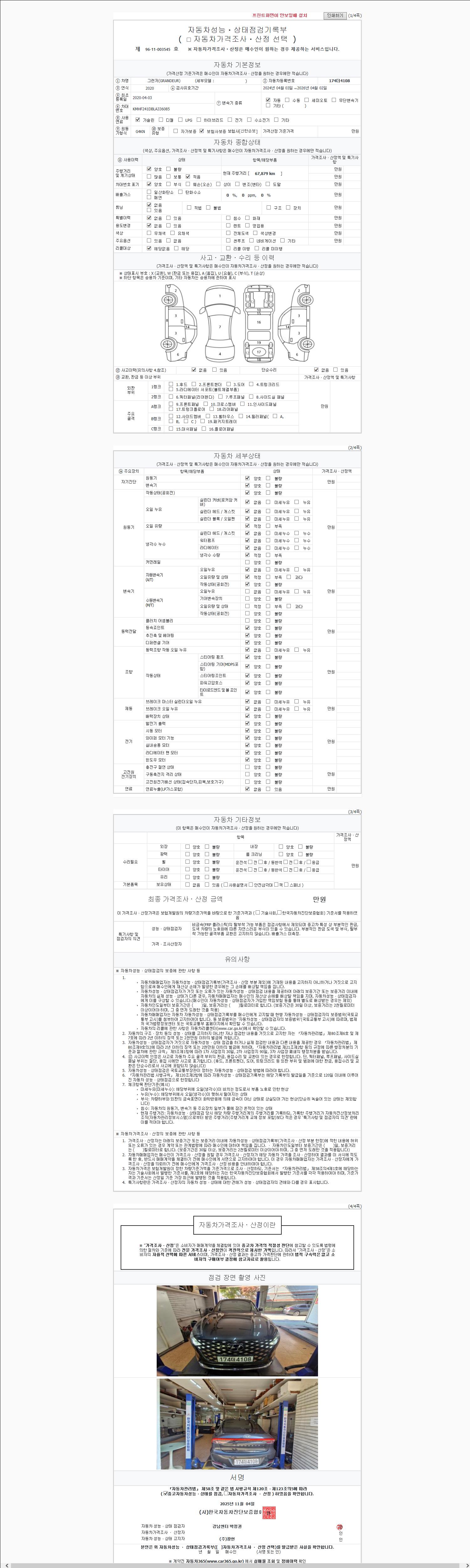 | 주행거리 | 67,875 km | 차량번호 | 174더4108 |