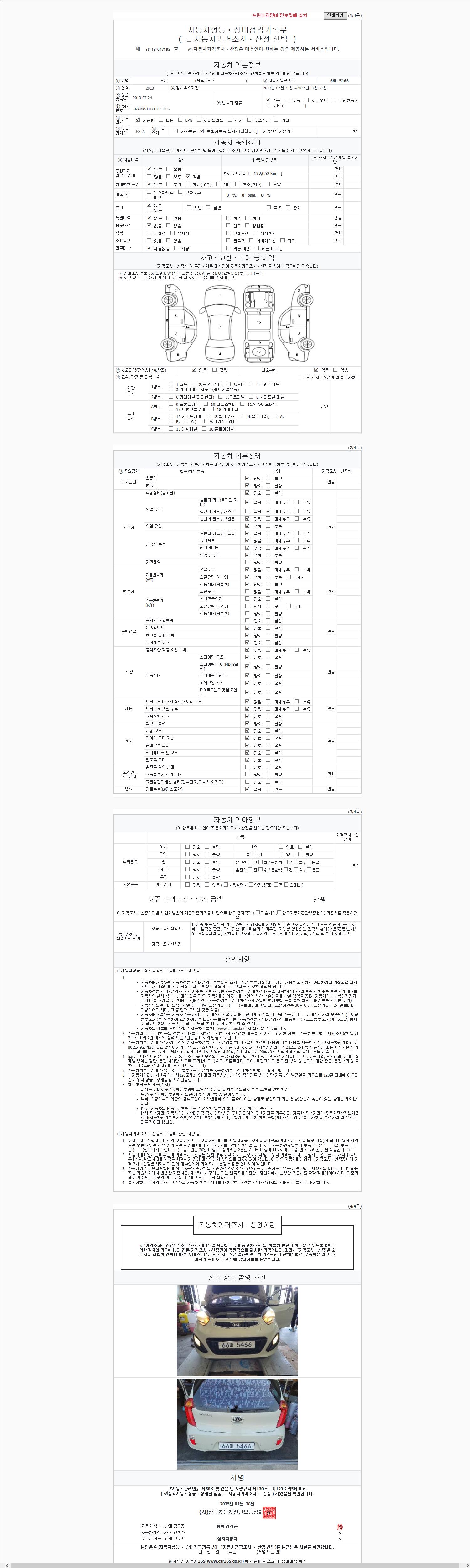 | 주행거리 | 122,052 km | 차량번호 | 66마5466 |