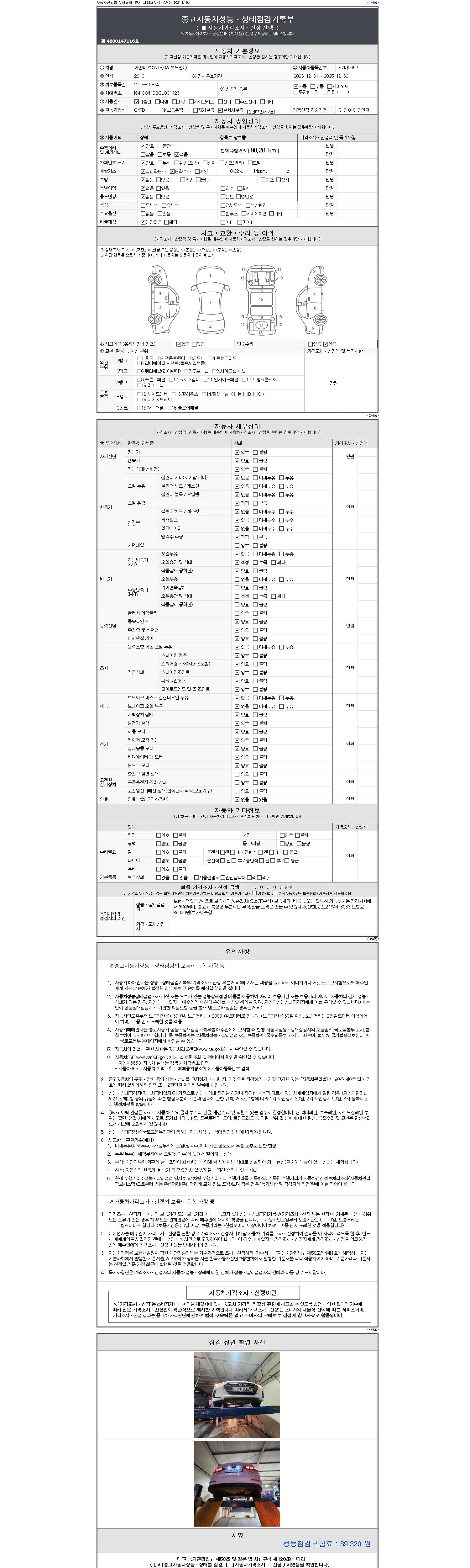-중고자동차 매매업자를 통해 차량을 구입하실 경우 반드시 "중고자동차 성능, 상태점검 기록부"를 교뷰 받으셔야 하며, 매매업자는 반드시 의무 교부 하여야 압니다.