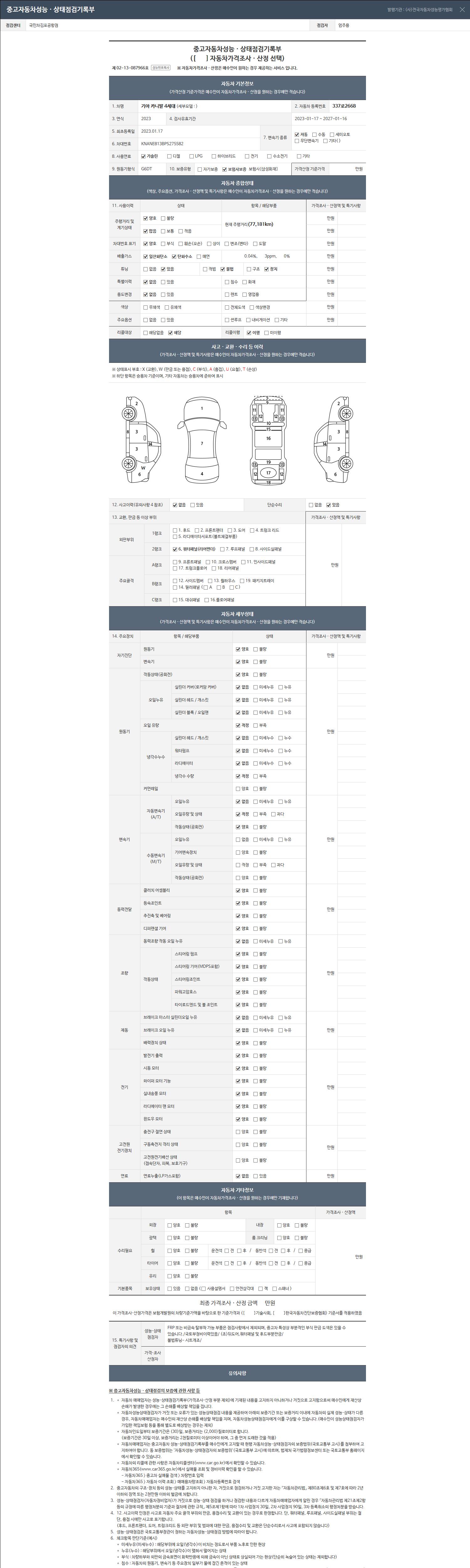 2. 차량 등록증이나 성능점검지 등을 상담자에게 요청및 확인하시고 사전에 미리 점검 하시기를 권유드립니다.