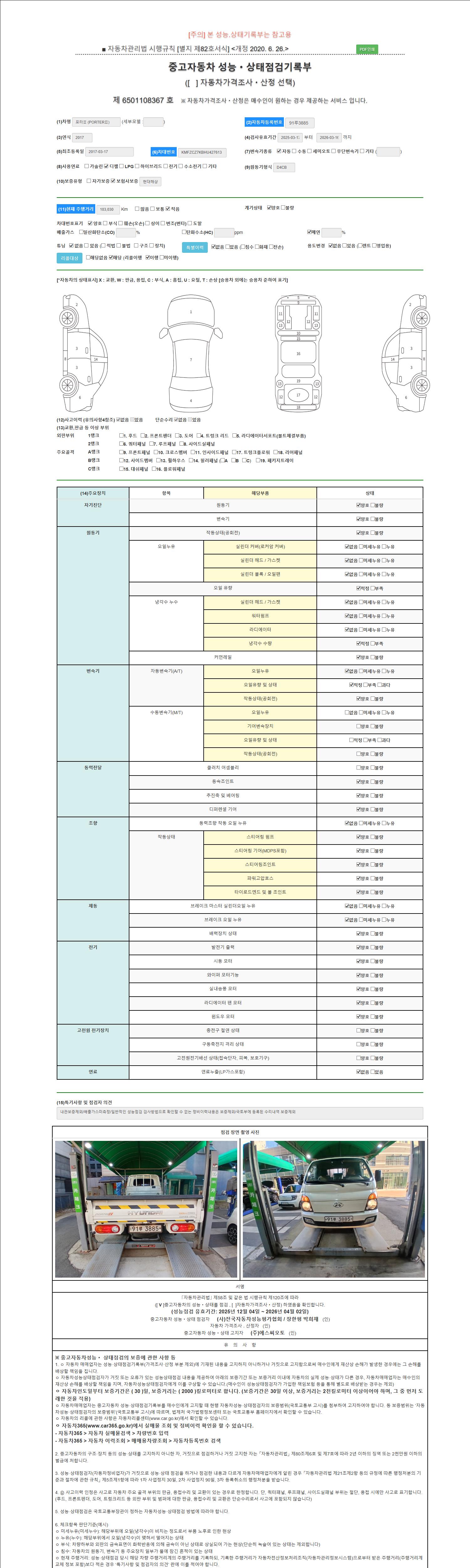 2. 차량 등록증이나 성능점검지 등을 상담자에게 요청및 확인하시고 사전에 미리 점검 하시기를 권유드립니다.