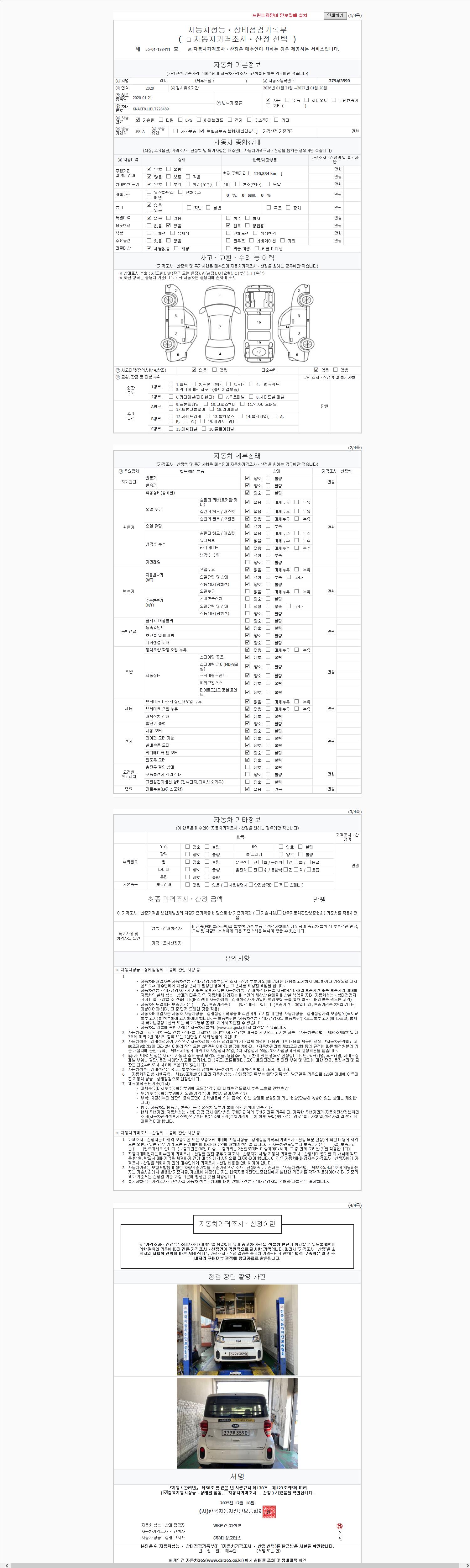 -중고자동차 매매업자를 통해 차량을 구입하실 경우 반드시 "중고자동차 성능, 상태점검 기록부"를 교뷰 받으셔야 하며, 매매업자는 반드시 의무 교부 하여야 압니다.