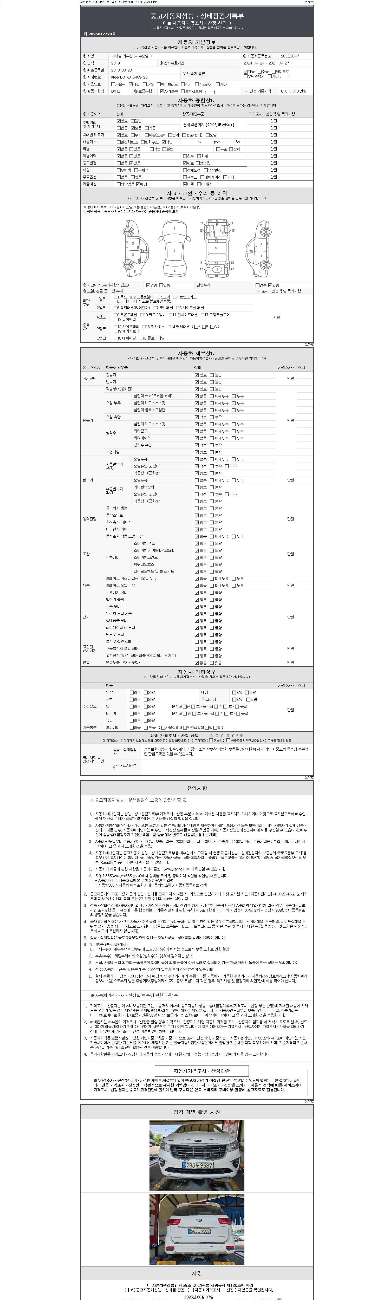 2. 차량 등록증이나 성능점검지 등을 상담자에게 요청및 확인하시고 사전에 미리 점검 하시기를 권유드립니다.