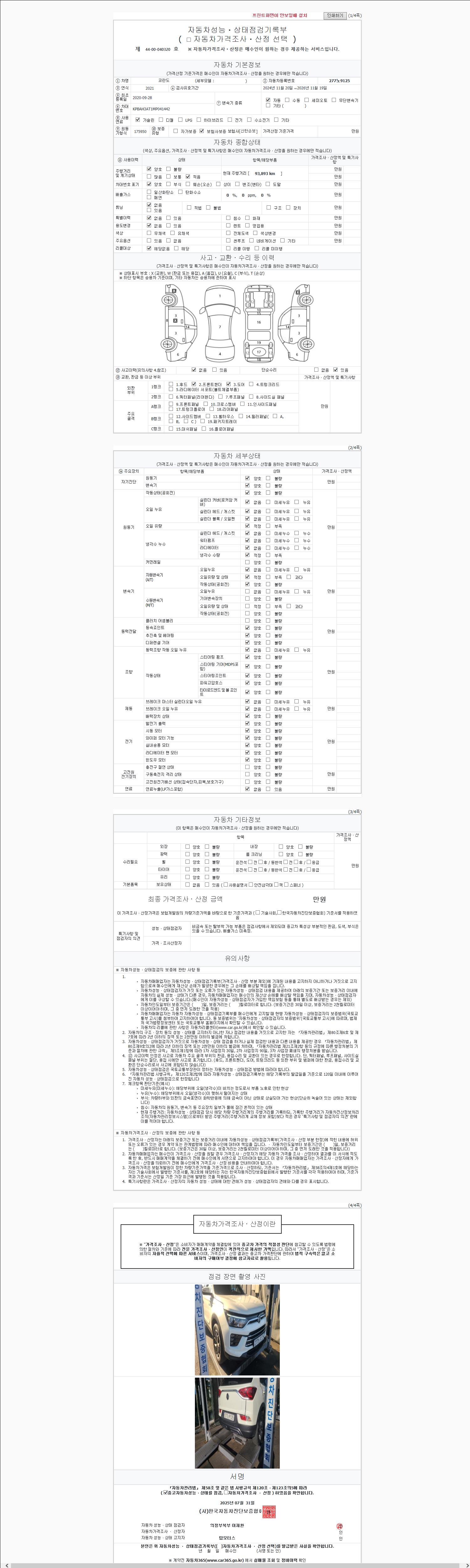 오토|휘발유|2020년 9월|93,893 km 277노9125| cc|흰색|무사고 |