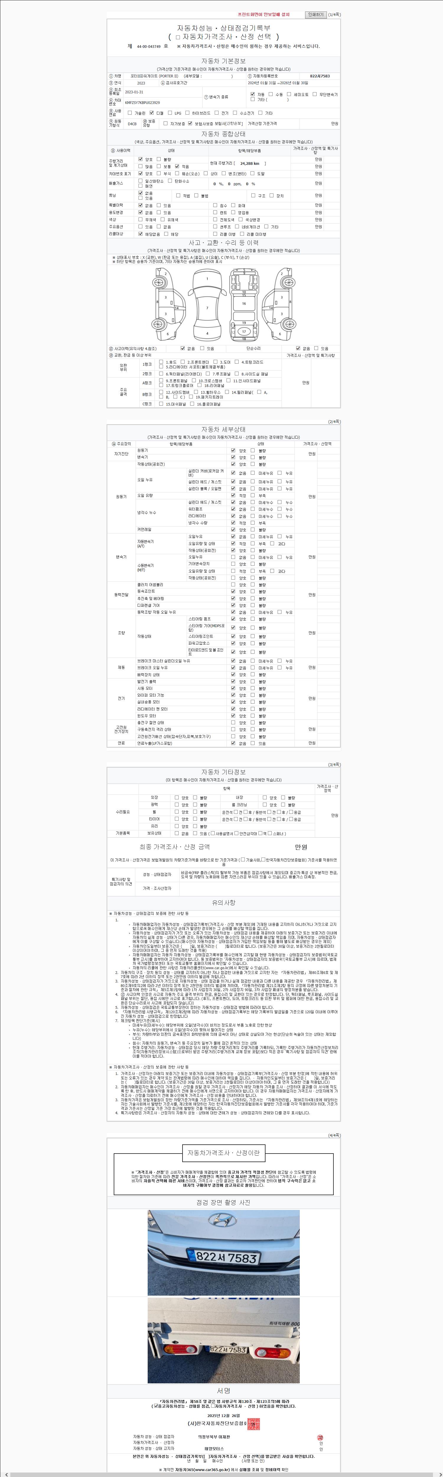 | 주행거리 | 24,288 km | 차량번호 | 822서7583 |