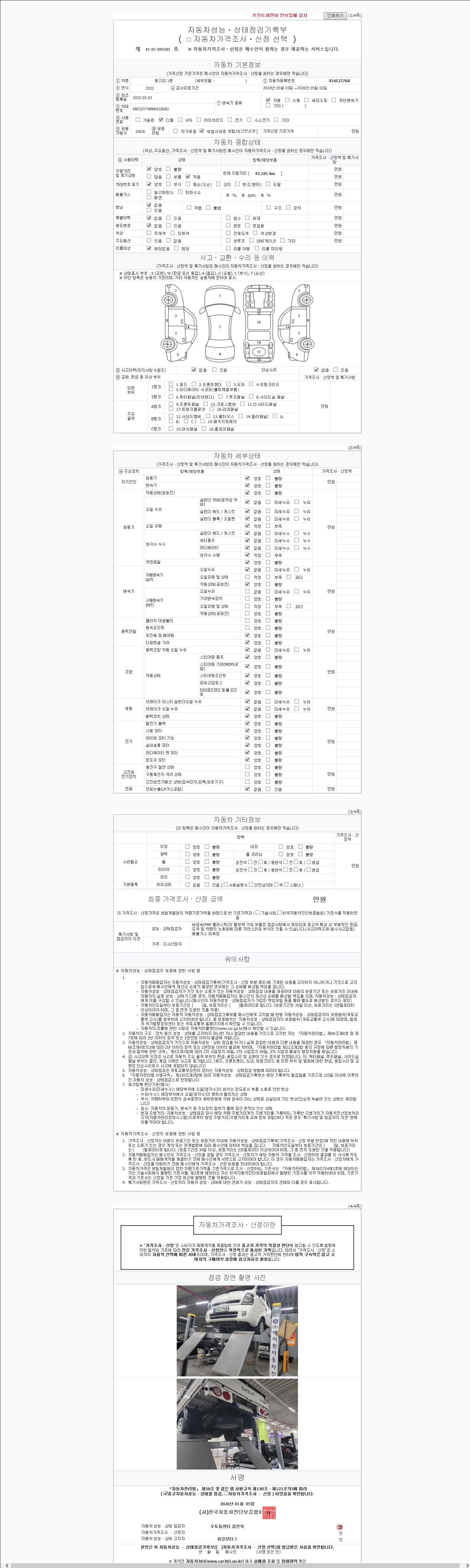2. 차량 등록증이나 성능점검지 등을 상담자에게 요청및 확인하시고 사전에 미리 점검 하시기를 권유드립니다.