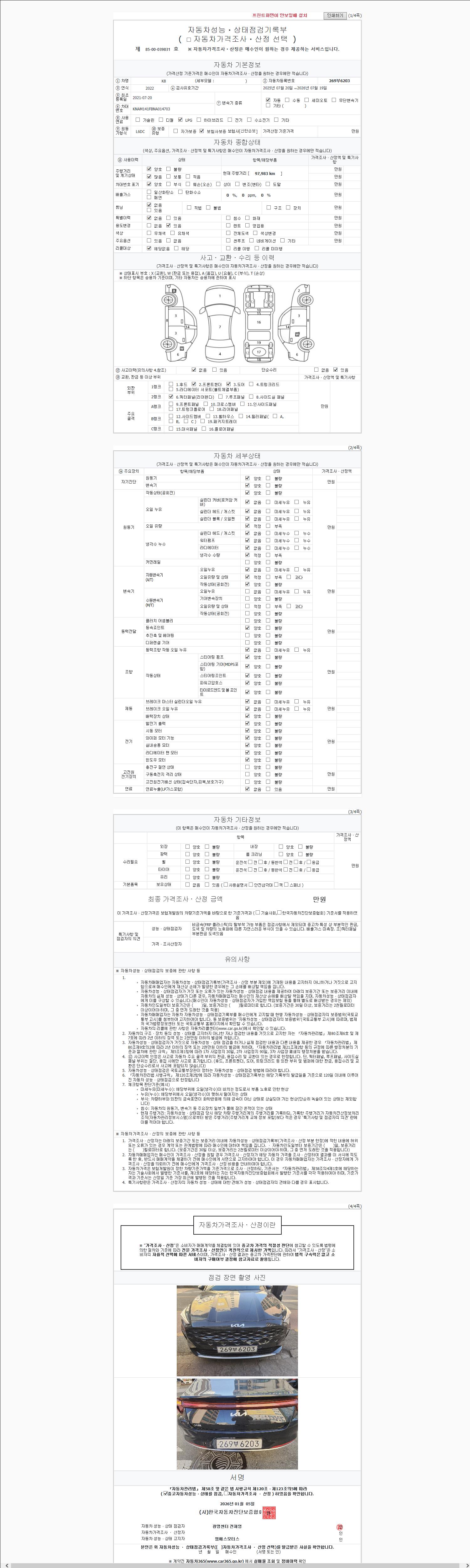 | 주행거리 | 97,983 km | 차량번호 | 269부6203 |